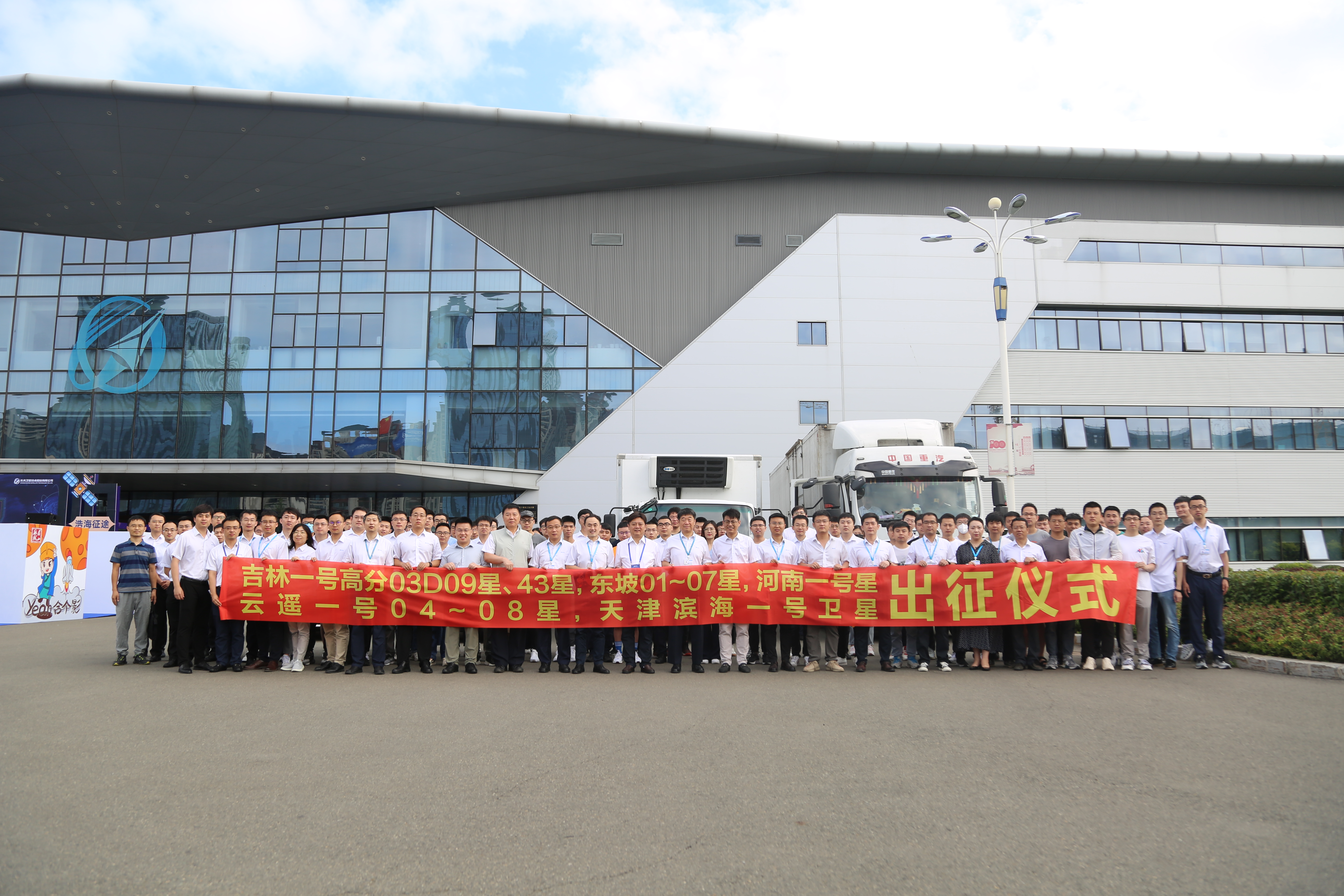 2022年7月17日,长光卫星技术股份有限公司在长春航天信息产业园举行眉山“天府星座” 东坡01~07号、“河南一号”、“浦银一号”、 “云遥一号”04~08、“天津滨海一号” 、 “吉林一号”高分03D09星等16颗卫星的出征仪式。公司及合作单位的领导和职工代表参加活动。