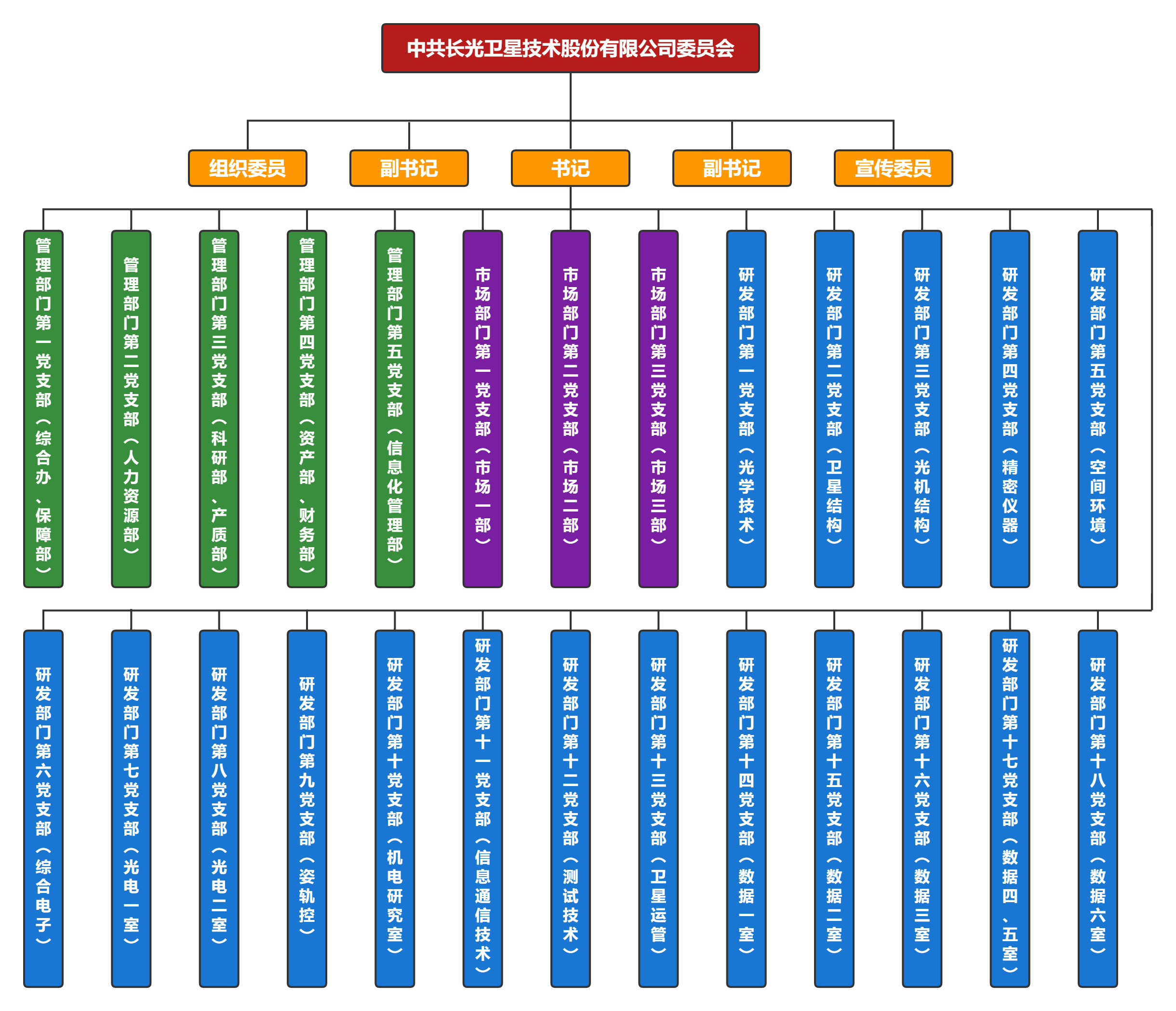 2018年12月24日,经中共长春市委组织部批准,中共长光卫星技术有限公司委员会成立(2022年2月14日更名为中共长光卫星技术股份有限公司委员会)。公司董事长张雷任党委书记,公司副总经理贾宏光、安源任副书记,党委班子由9人组成。目前公司党委下设26个党支部,党员人数超490人(占员工总数53%)。