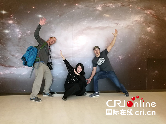 辛迪(中)与两位美国大V合影。姜彦艳 摄影