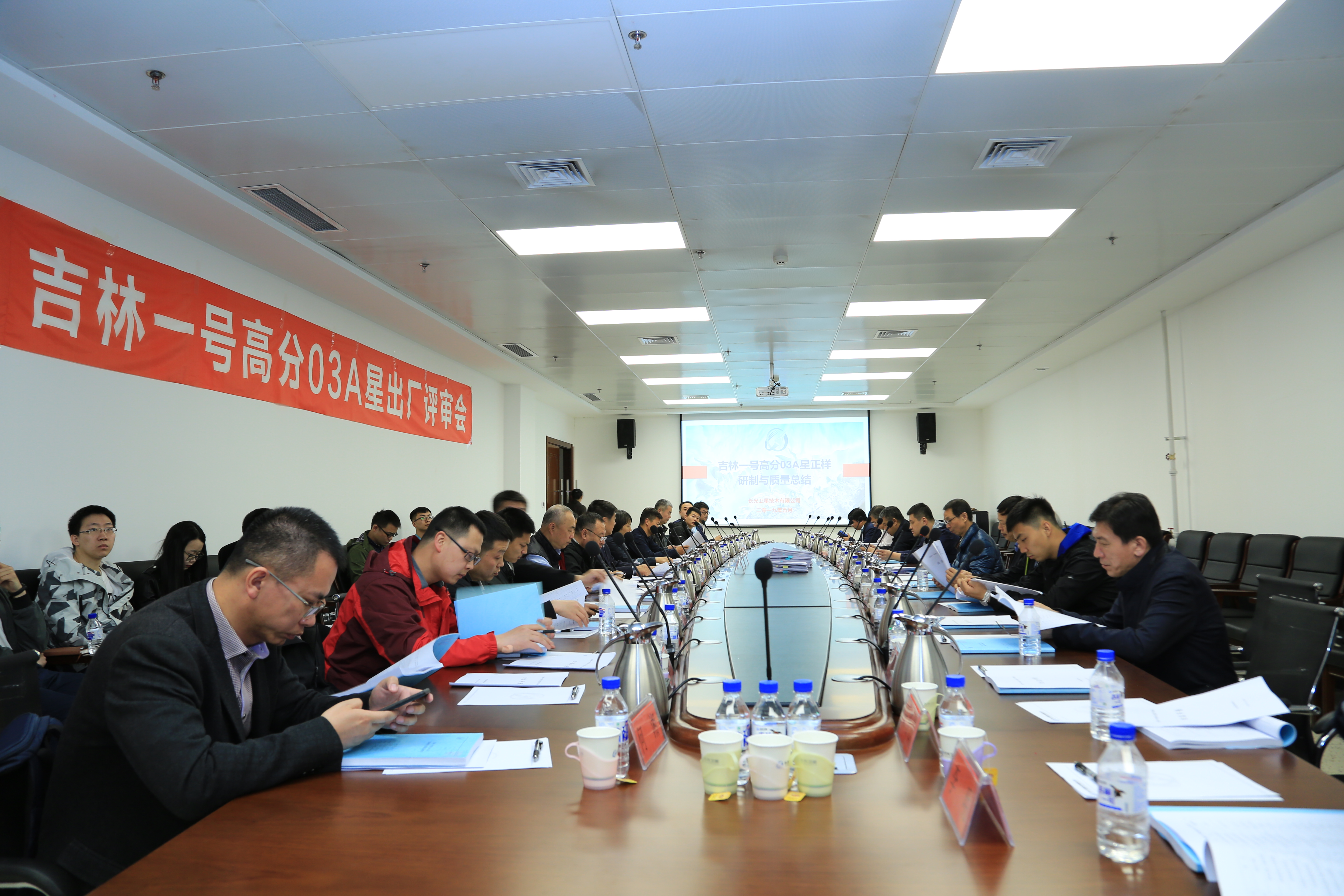 2019年5月6日,长光卫星技术有限公司在长春组织召开了“吉林一号”高分03A星出厂评审会。会议成立了评审专家组,来自航天系统多个单位的专家和代表听取了公司所作的《“吉林一号”高分03A星正样研制与质量总结报告》,经质询与讨论,形成评审意见如下: