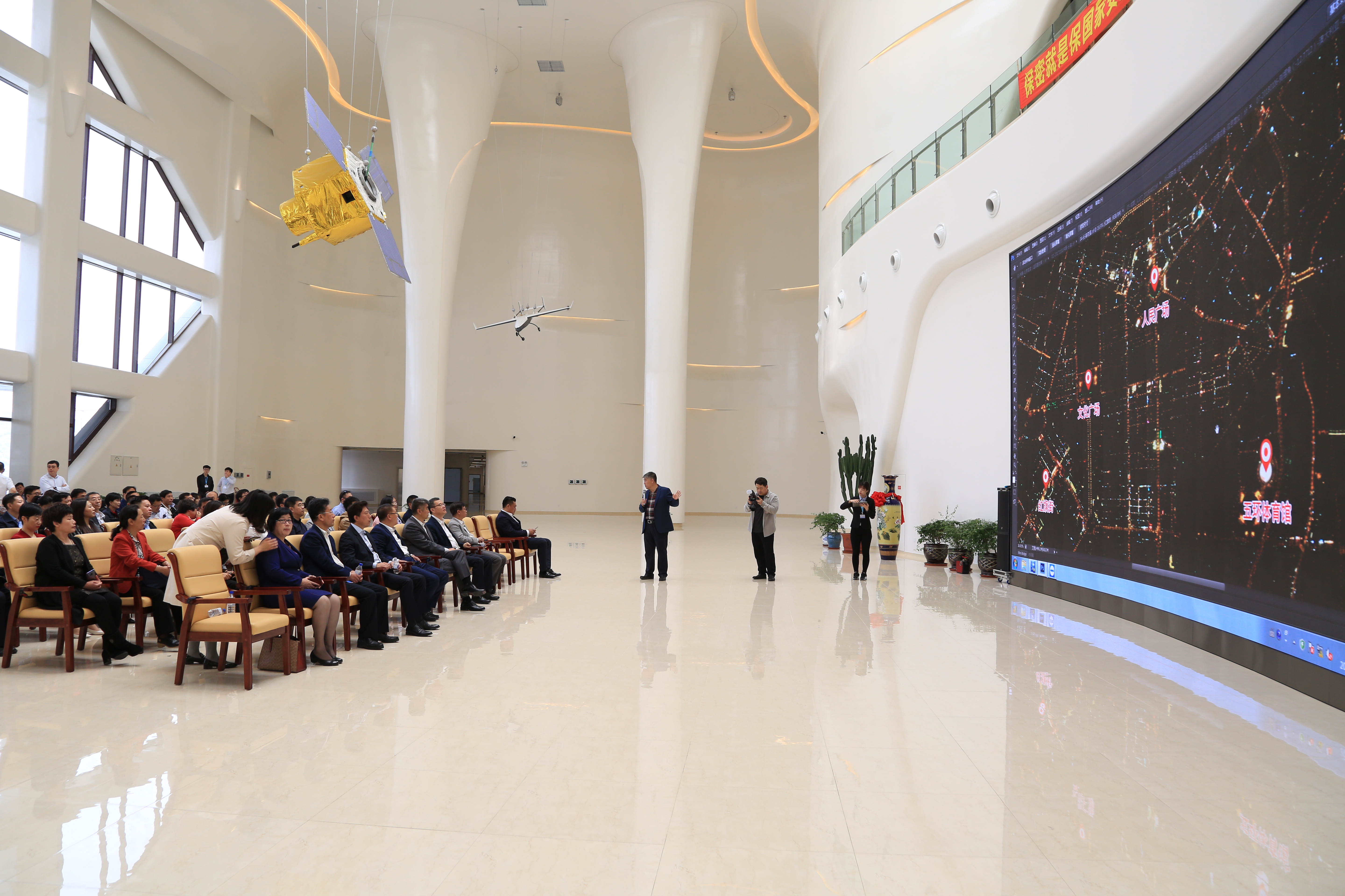 贾宏光代表公司对调研组一行的到来表示热烈欢迎,并介绍了公司历史沿革、运营、发展以及人才队伍建设等情况,阐明了公司以航天信息产业园作为重要的载体支撑,将在技术研发、生产制造等方面发挥重要作用,着力打造空天地一体化的遥感信息产品,服务全球70亿人。