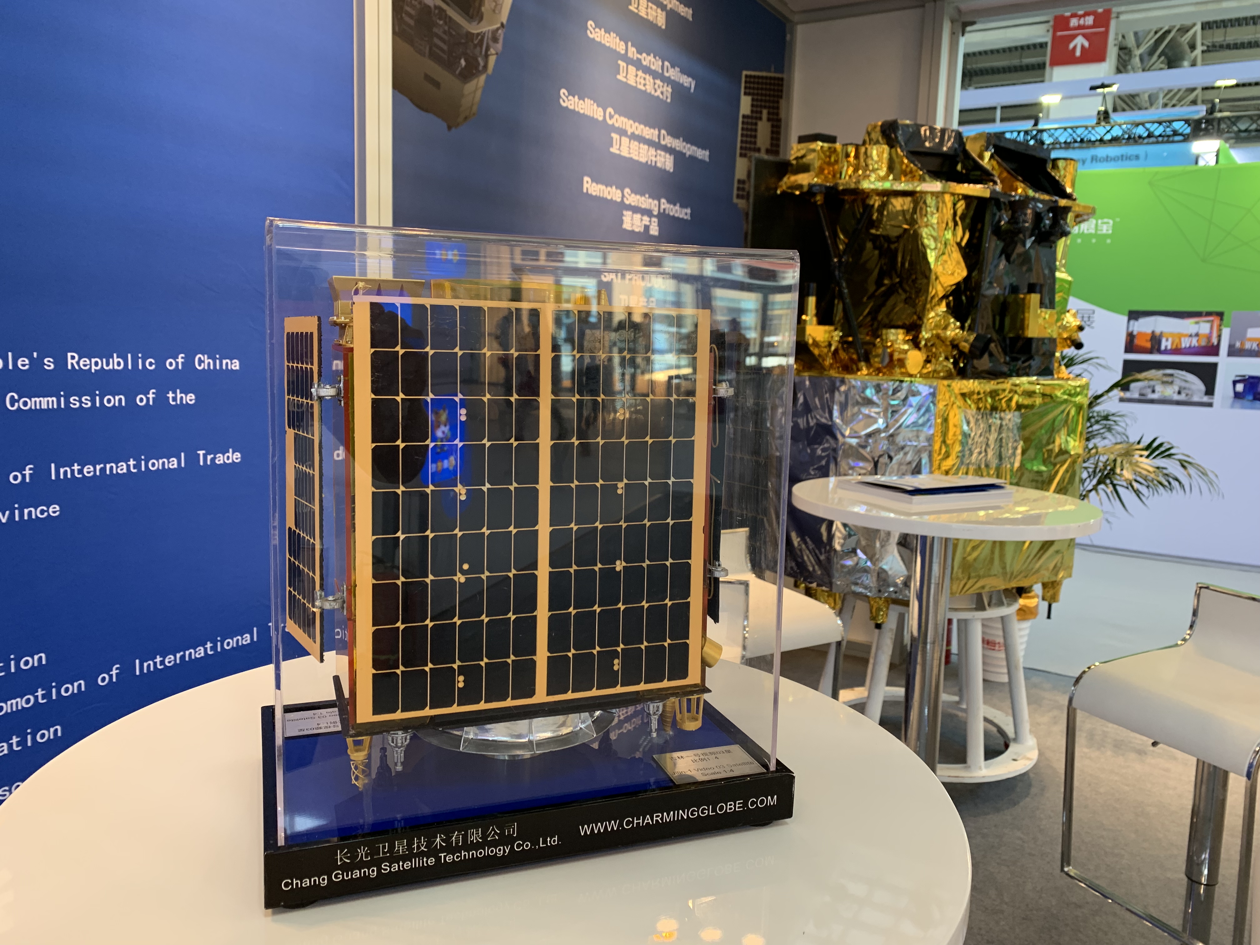 本次展览我公司携“吉林一号”卫星星座中的光谱01星卫星模型亮相中国国际展览中心(新馆)W3馆。“吉林一号”光谱卫星是由公司自主研发的新型多光谱卫星,具备近红外、短波、中波、长波红外成像技术,可获取5m分辨率、110km幅宽、26谱段的遥感卫星数据,极大增强了“吉林一号”卫星对地遥感多光谱数据获取能力。