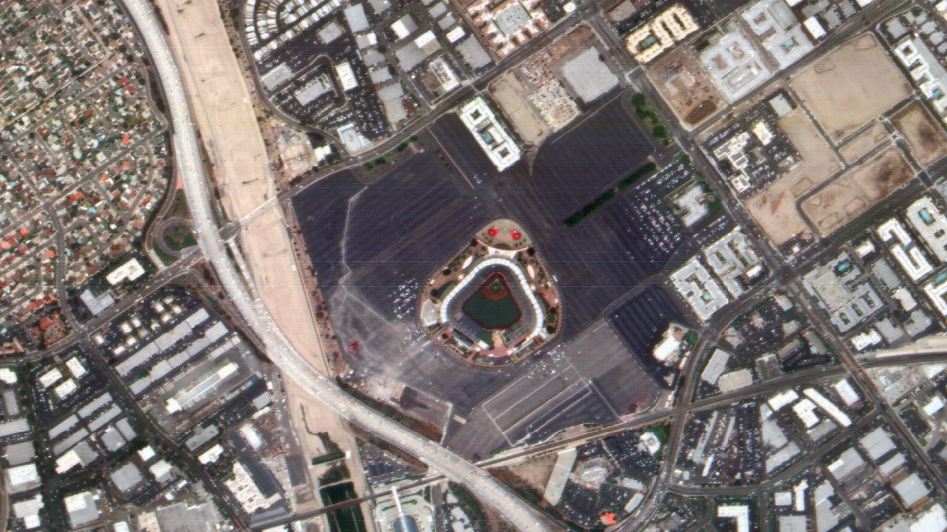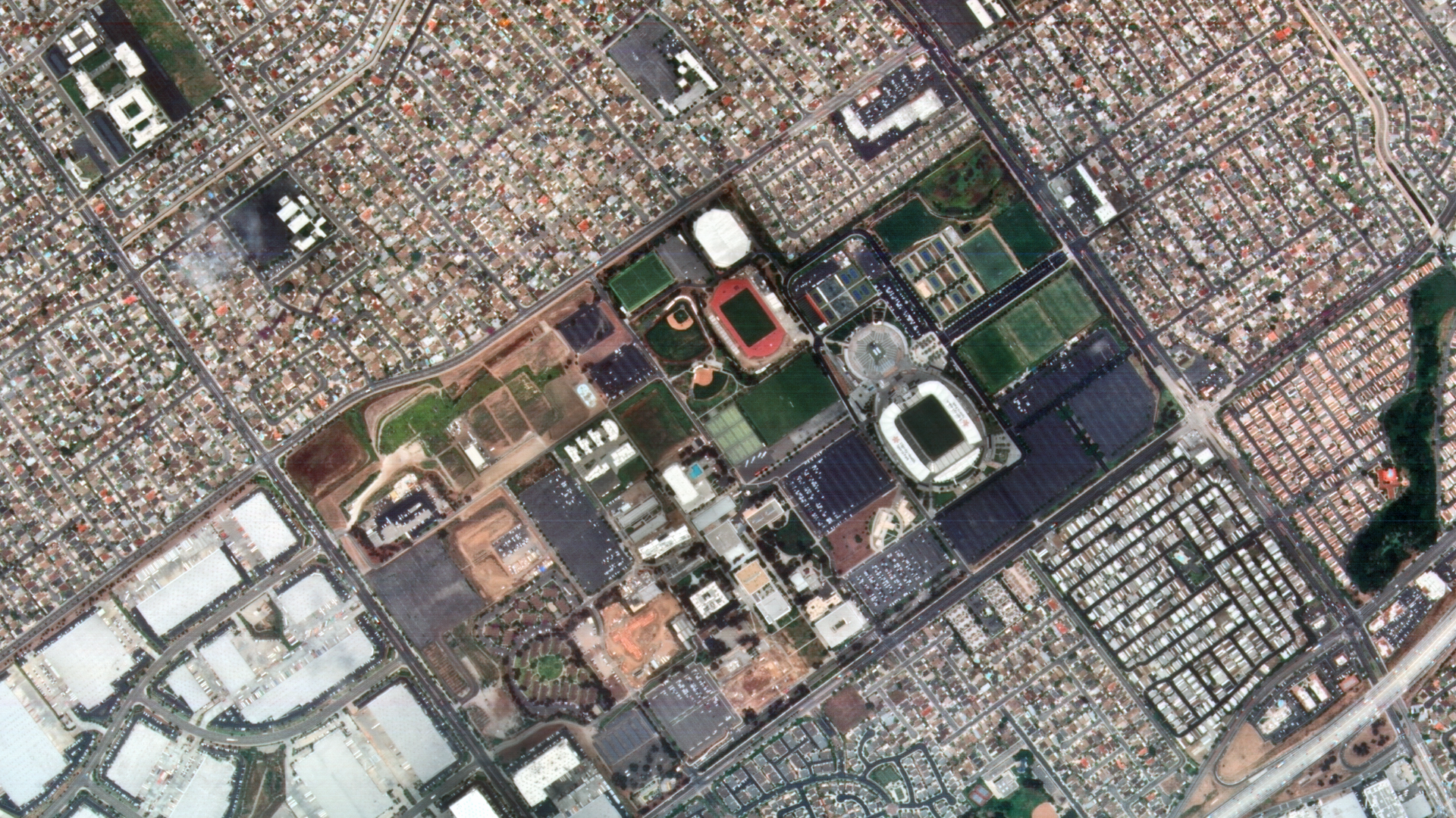 “吉林一号”高分03A星充分继承了“吉林一号”卫星成熟单机以及技术基础,通过采用轻量化结构设计、高度集成电子学系统、高分辨率/超轻量化/低成本相机等创新技术,在572km轨道高度下,实现了整星分辨率优于1.1m、幅宽优于18km的技术指标下,重量低于40kg,具有低成本、低功耗、低重量、高分辨的特点。此次拍摄影像地点为美国洛杉矶。可以看到图像中景物层次丰富、纹理清晰、色彩分明,体育场馆、机场中的飞机、跑道等清晰可见,卫星分辨率、幅宽等指标达到了设计要求。