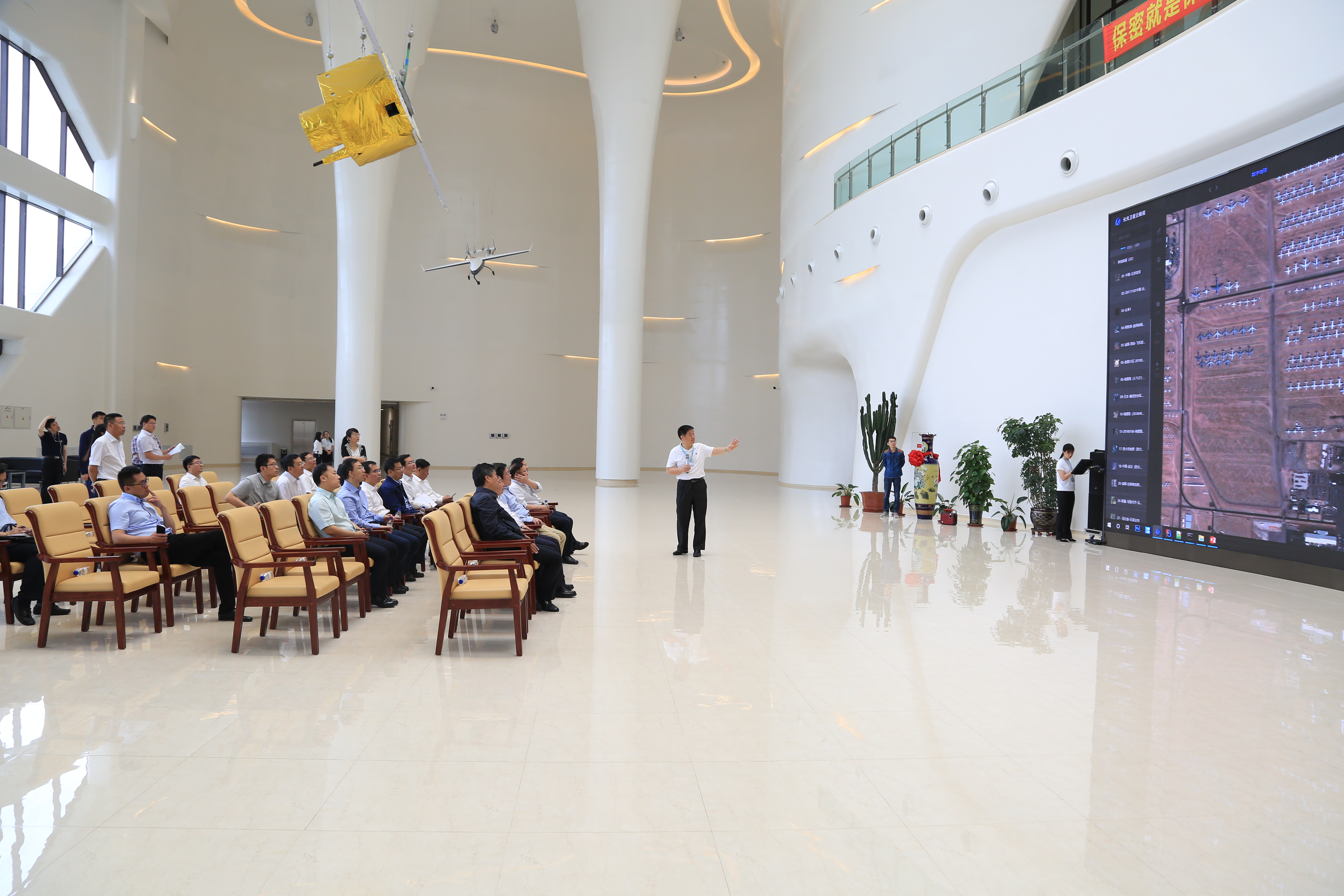在吉星楼北厅,宣明向调研组展示了“吉林一号”卫星在交通、水利、环保、农业等领域的应用案例。