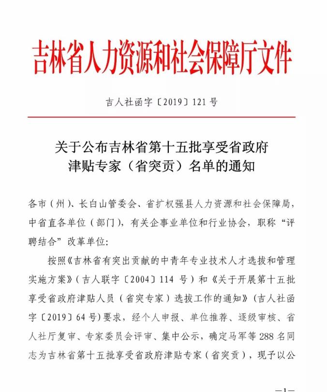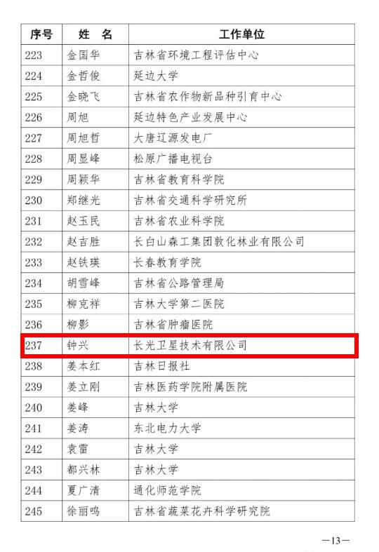 2019年4月,吉林省人社厅组织开展了“吉林省第十五批享受省政府津贴专家(省突贡)”选拔工作。由个人申报、经长春新区推荐、专家委员会评审、集中公示,公司副总经理兼型号总师钟兴入选此次“省突贡”专家名单(吉人社函字【2019】121号)。