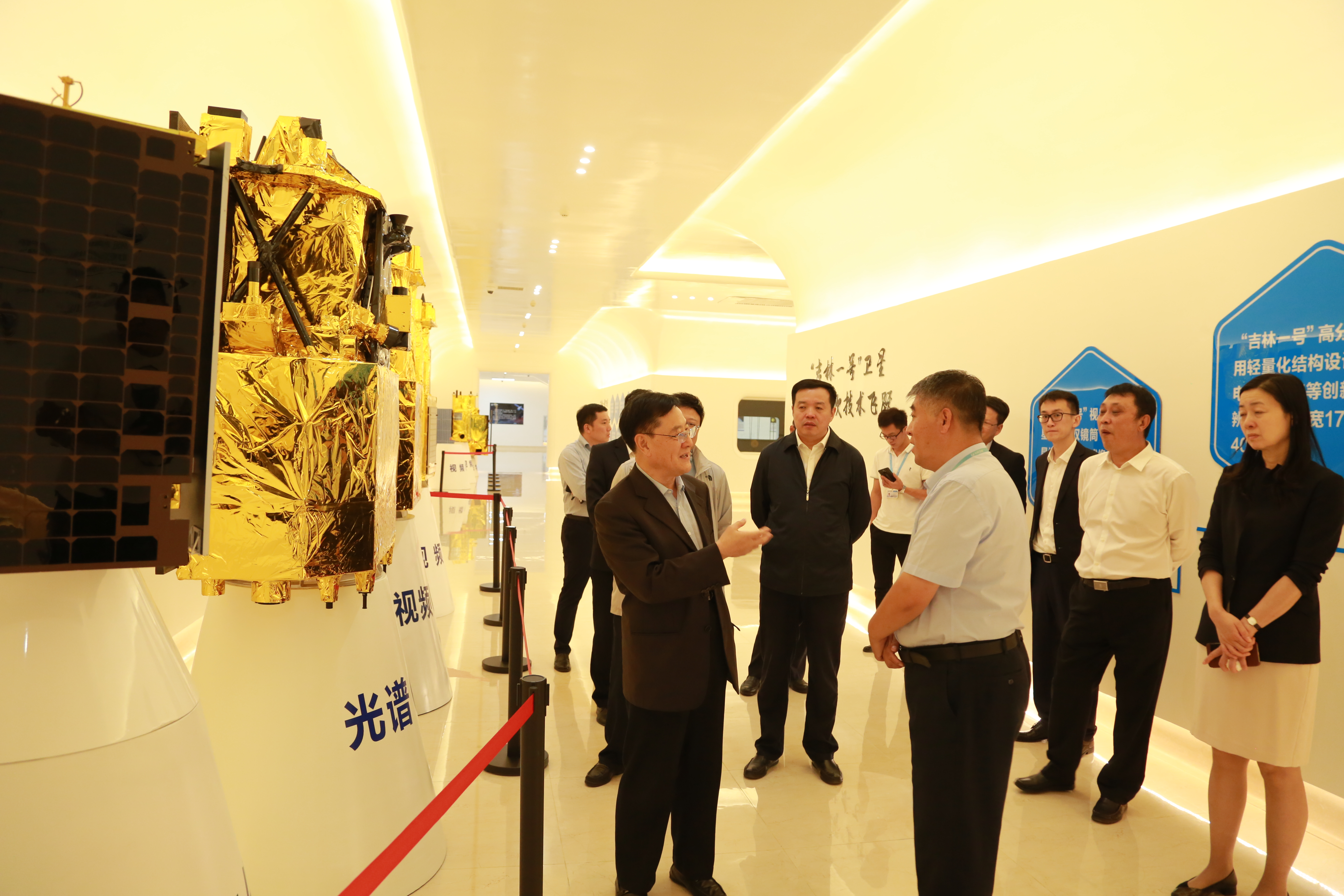 随后,贾宏光带领调研组一行参观了航天科普教育基地,近距离观看了相机装调、整星装配和环境试验等核心区域。贾宏光强调,公司在研高分、宽幅等卫星型号技术指标和功能处于世界领先水平,取得了成本低、质量轻的新突破。