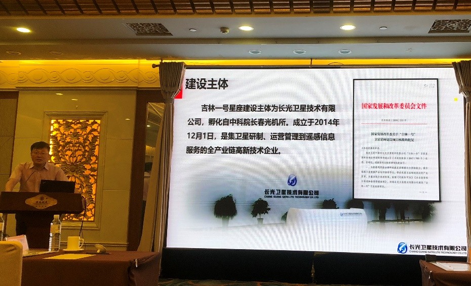 会上,长光卫星技术有限公司副总经理钟兴以“‘吉林一号’星座发展现状及应用”为主题进行了汇报,他向各位专家学者介绍了“吉林一号”星座的建设背景、发展现状、长光卫星数据产品、“吉林一号”光谱星技术指标和“吉林一号”光谱星数据应用等内容。