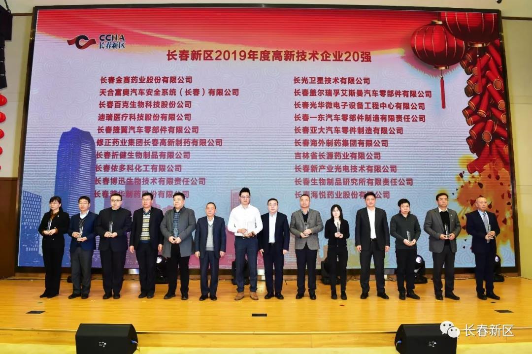 2020年1月10日,长春新区组织召开了2019年度优秀企业和杰出人才表彰暨迎新茶话会,公司荣获长春新区2019年度高新技术企业20强荣誉称号。公司党委书记、副总经理贾宏光受邀出席,并在颁奖仪式上进行了发言。