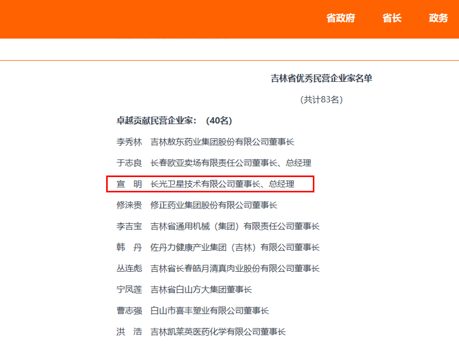 2020年4月13日,吉林省服务企业大会在长春召开。省委书记、省人大常委会主任巴音朝鲁出席会议并讲话,省委副书记、省长景俊海主持会议。会上,宣布了关于同意设立“吉林省企业家日”的决定;宣读了吉林省突出发展民营经济考核评比表彰决定,对优秀民营企业和优秀民营企业家进行了表彰。公司董事长、总经理宣明荣获“吉林省卓越贡献民营企业家”荣誉称号。