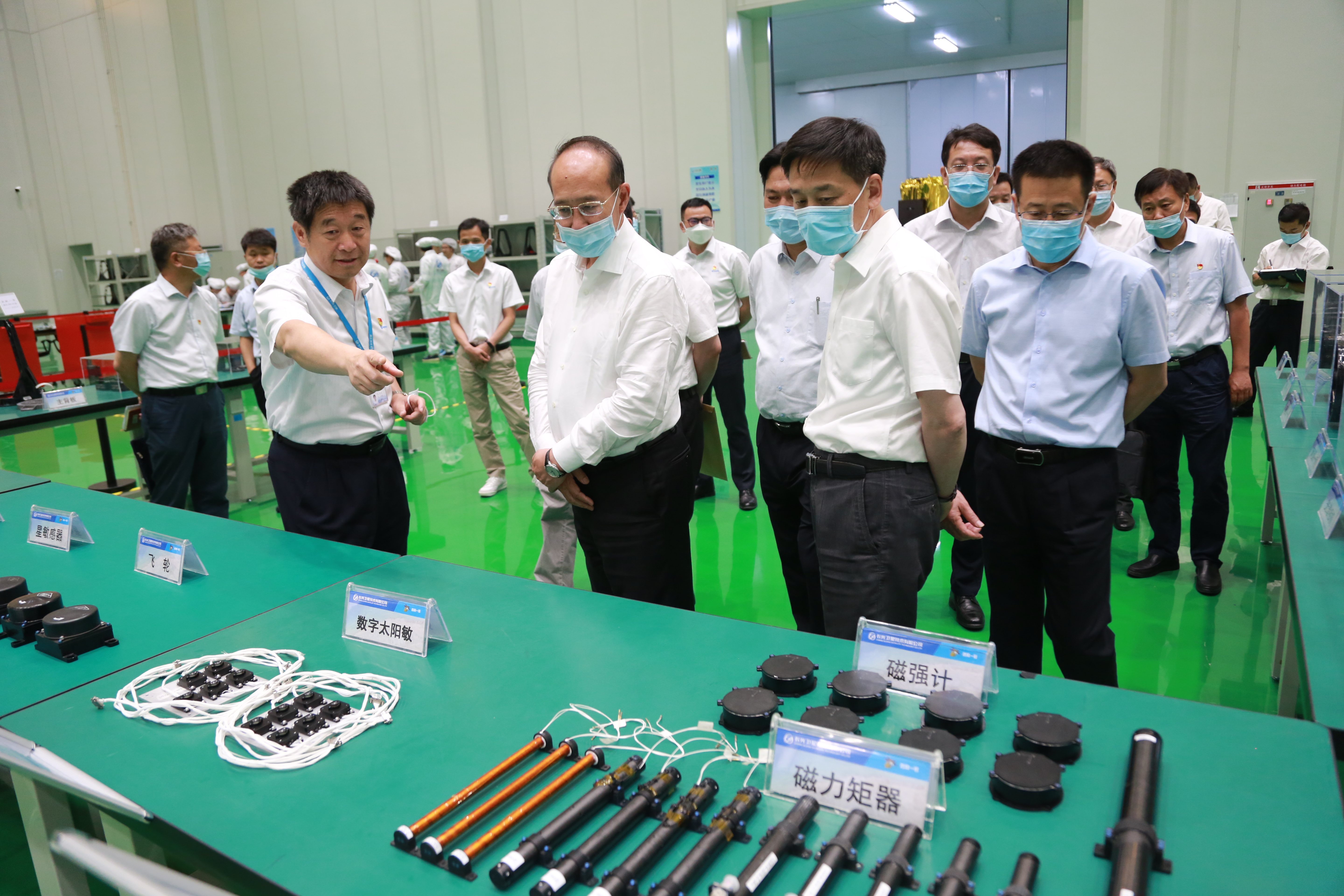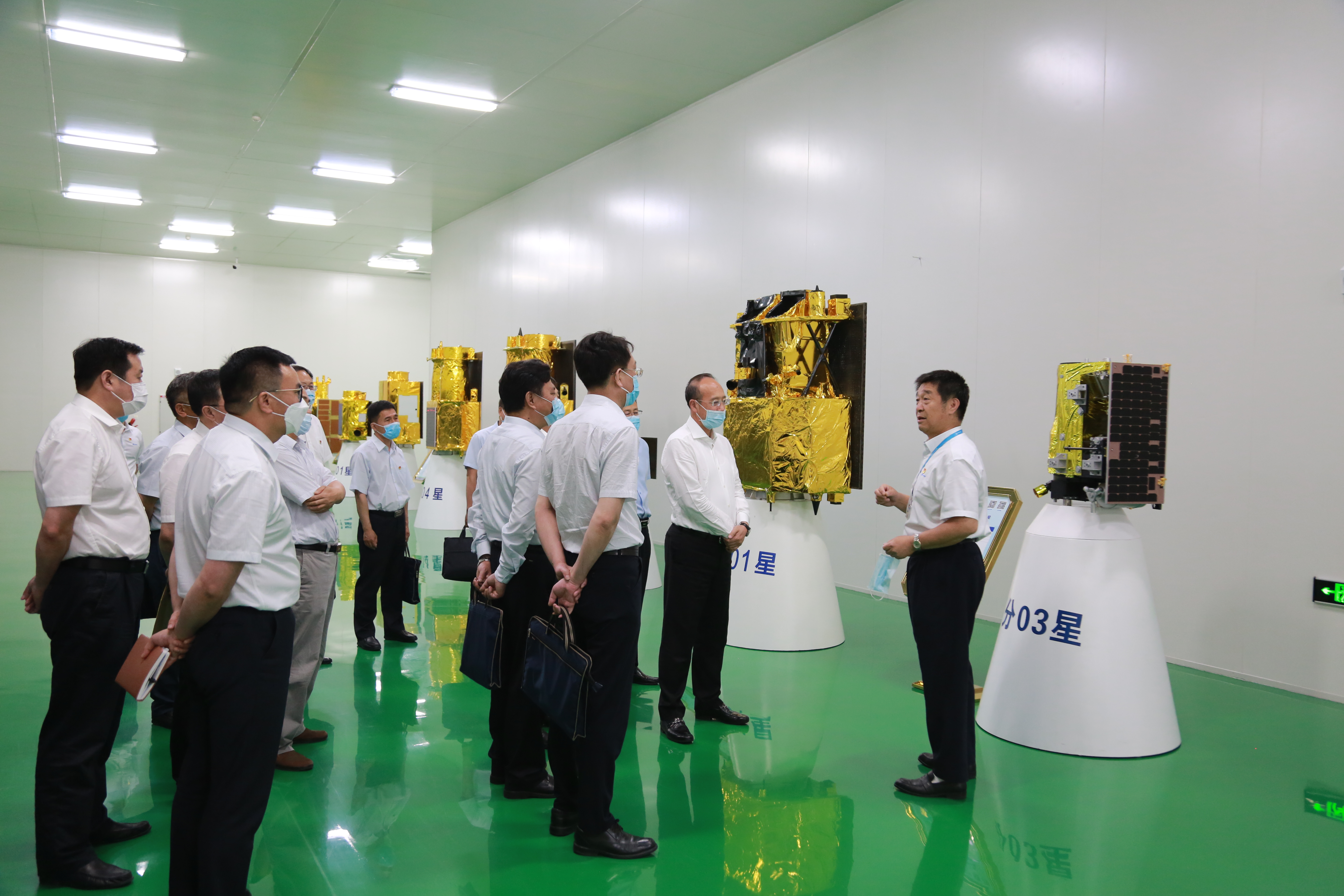 吴靖平一行在公司董事长、总经理宣明陪同下实地考察了“吉林一号”卫星及相关组件研制生产情况。宣明提到,公司已通过十次发射,成功将19颗卫星送入太空,“吉林一号”星座卫星数量快速增至16颗。在全体研发人员的协同攻关下,公司坚持自主创新,五年内逐步实现了卫星低功耗、低重量、低成本的三个技术跨越,同时实现了核心关键单机及组件自研化、量产化。此外,公司搭建起了国内一流的生产、检测、试验条件,具备了卫星批量化生产能力,依托优秀的研发团队及先进的生产条件,为后续星座建设及项目开展奠定了坚实的基础。