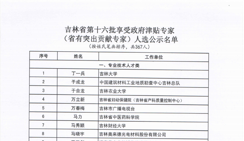 2020年6月,吉林省人力资源和社会保障厅组织开展了“吉林省第十六批享受省政府津贴专家(省有突出贡献专家)”选拔工作,经个人申报、单位推荐、逐级审核、专家评审,公司副总经理戴路、安源分别获评专业技术人才类和企业经营管理人才类“省有突出贡献专家”。