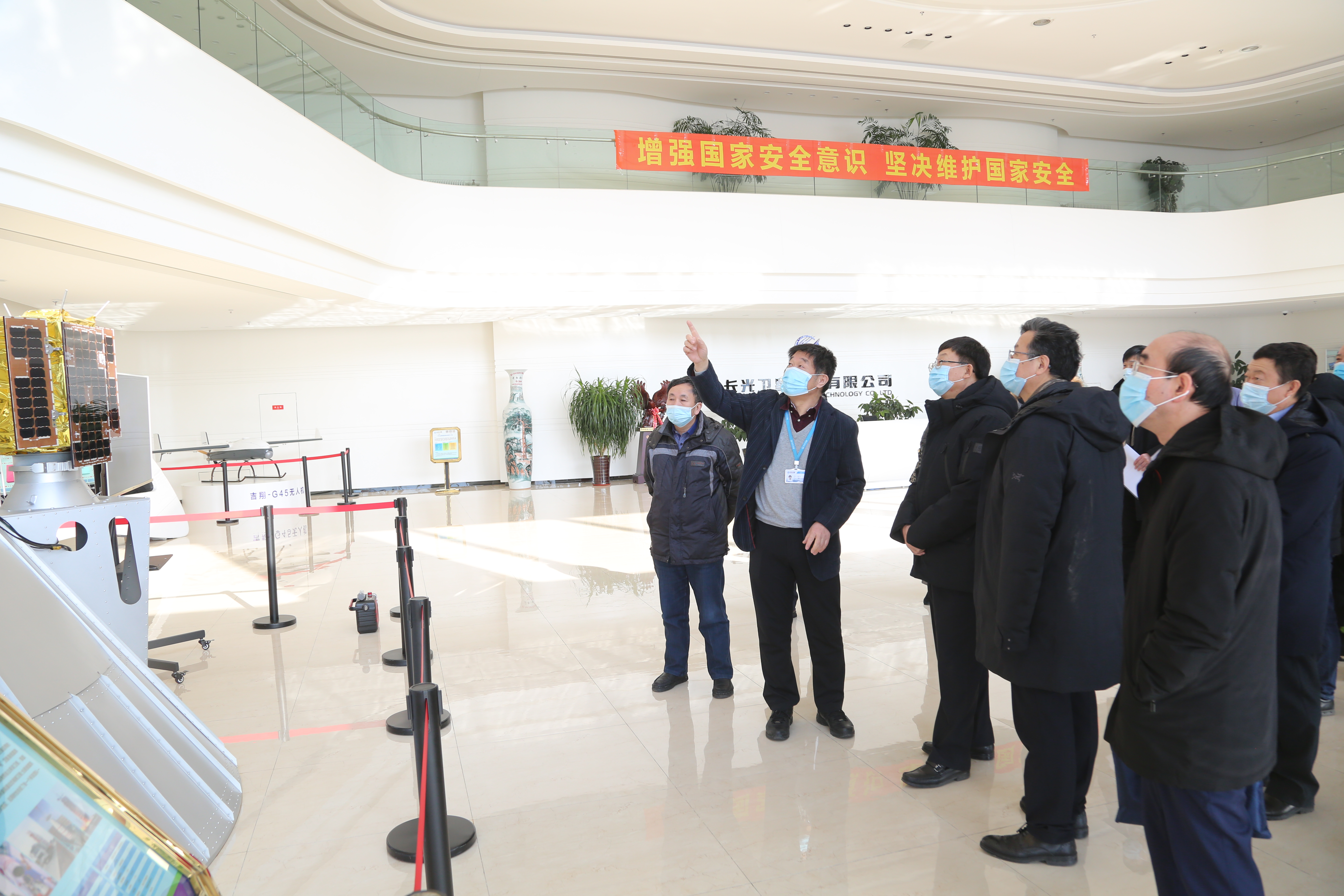 宣明向李伟一行详细介绍了公司卫星研制及数据应用情况,并说到,自公司成立以来,始终坚持自主创新,并在卫星研制实践中不断总结,整星及光学载荷研制技术取得了多项突破性成果。高分03A星在分辨率1m、幅宽17km指标下,重量由原来的420kg降到40kg,成本实现了极大幅度下降,目前公司正在以高分03星为蓝本开展卫星批产探索,正式启动了卫星批量化生产线建设,卫星研制模式已经由“研发”转为“生产”,将大大加快星座建设速度。目前“吉林一号”卫星数量快速增至25颗,建成了我国目前最大的商业遥感卫星星座,具备全球一张图每年更新2次的能力,已为自然资源、城乡建设、生态环境、应急管理等领域提供了高质量的遥感信息服务。