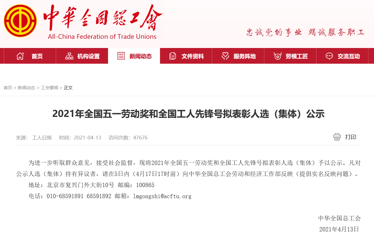 近日,根据吉林省总工会下发的《关于推荐评选2021年全国五一劳动奖和全国工人先锋号的通知》(吉会办字〔2021〕6号)要求,经过公司工会申报、专家评审、中华全国总工会公示等程序,公司总经理助理徐开荣获2021年“全国五一劳动奖章”。
