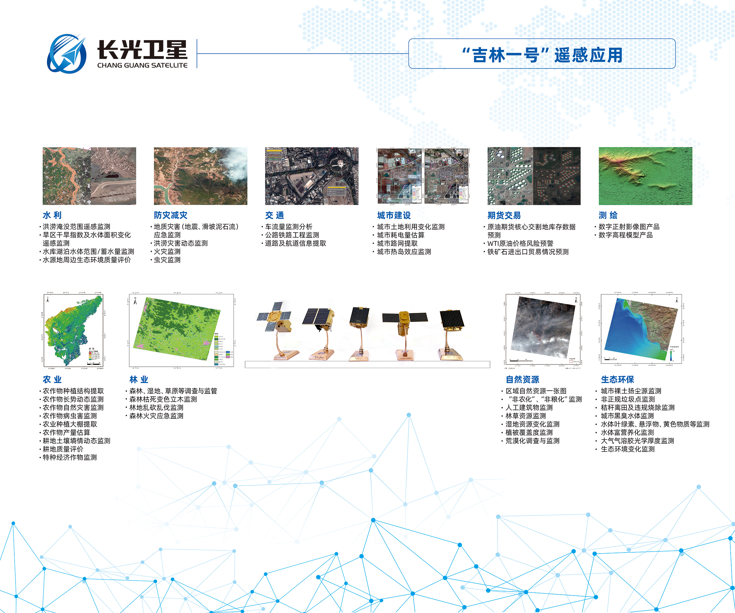 卫星应用技术与设备展览会上,公司集中展示了“吉林一号”6类基础数据产品和10类专题产品,吸引了众多专家、行业用户驻足观看。多年来,长光卫星依托“吉林一号”推扫数据、视频数据、夜光数据、多光谱数据、DSM数据以及惯性空间数据,凭借图像质量高、响应速度快、覆盖面积广的特点,已在农林、水利、环保、交通、自然资源、城市建设等14个领域开展150余项类别的精准服务。