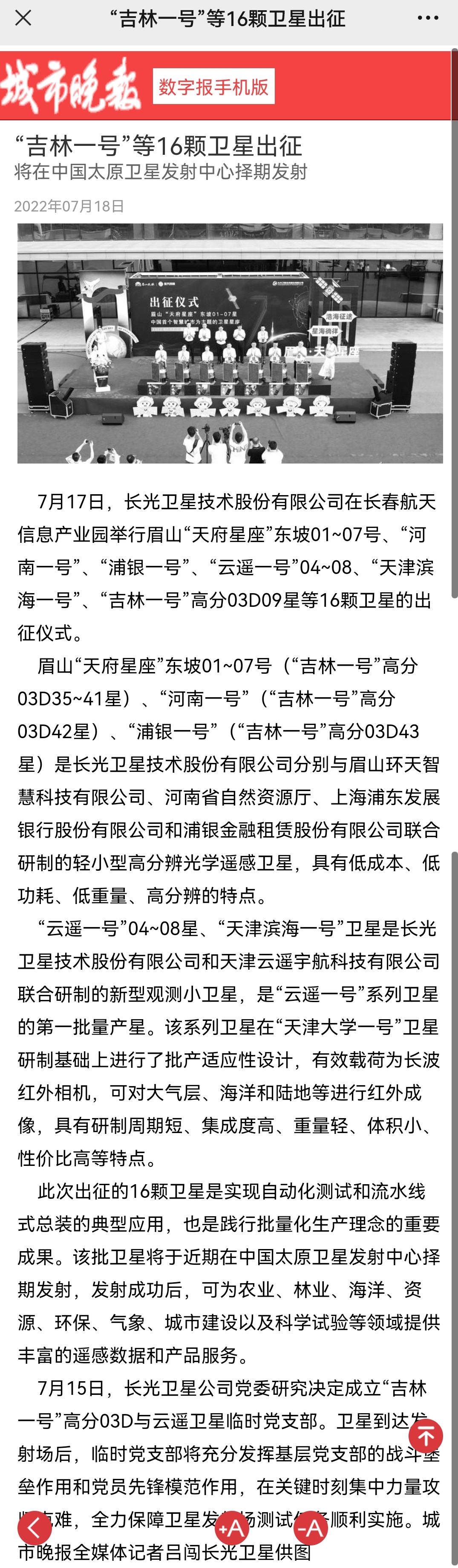 城市晚报数字报手机版-“吉林一号”等16颗卫星出征