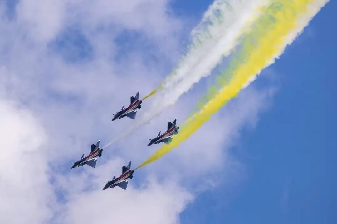 本次航空展于8月26日在长春市大房身机场开幕,随着6枚信号弹腾空而起,乘坐运-5飞机的跳伞队员进入表演空域,中国共产党党旗、中国国旗、八一军旗和空军军旗迎风飘扬。随后,天之翼、红鹰飞行表演队先后用低空通场、双机对冲、丘比特之箭等21套特技飞行动作闪耀蓝天。大国重器歼-20、运-20精彩亮相,新一代空中加油机运油-20首次与公众见面,歼-16、轰-6k、空警-500等新型装备成体系集中展示,充分展现了空军“奋斗强军、奋飞十年”的建设发展成就。空军司令员常丁求、省委书记景俊海出席活动。空军政治委员郭普校,省委副书记、省长韩俊致辞。公司党委书记、副总经理贾宏光出席活动并为出席领导介绍公司发展近况及“吉林一号”星座组网情况。
