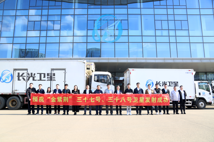 2023年5月22日,长光卫星技术股份有限公司在长春航天信息产业园举行西安航投“秦岭小卫星星座”系列卫星、“金紫荆”37-38号星、“霍尔果斯一号”、“哈测农遥一号”、“吉林一号”高分06A系列卫星、“吉林一号”高分03D19星及“吉林一号”平台02A01-02星等41颗卫星的出征仪式。公司及合作单位的领导和职工代表参加活动。