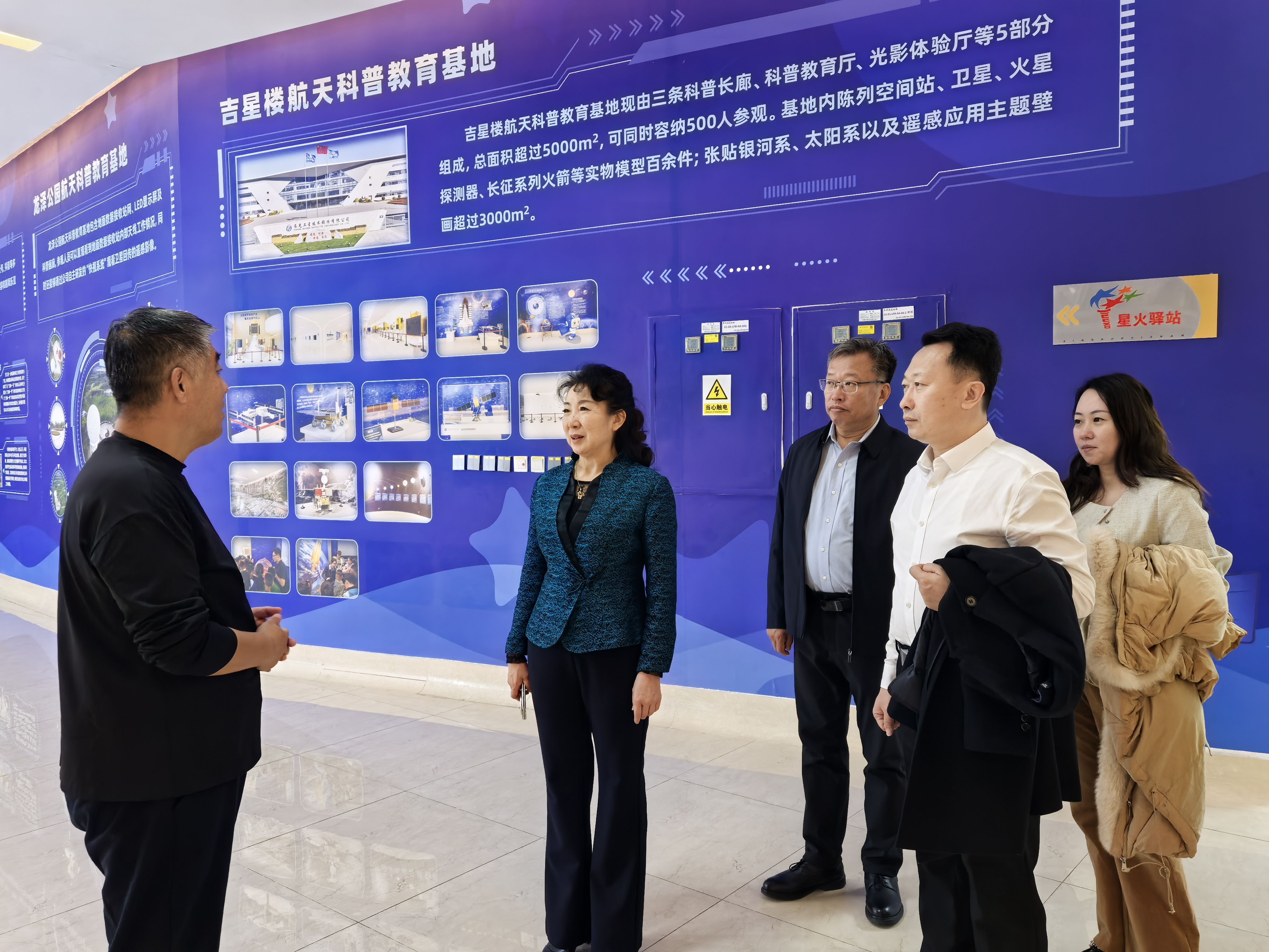 贾宏光陪同辛兵一行实地察看了航天科普教育基地及卫星生产试验区域,并着重就公司在航天科普教育领域的实践与探索情况进行了详细介绍。贾宏光说到,公司充分发挥高新技术企业优势,主动承担社会责任,长期开展公益性航天科普教育工作,自主编制了多本“吉林一号”系列科普图书,创作了10余门航天科普课程,构建了“1+6+N”的系统性教学体系,积极广泛地参与到青少年科普教育事业中,播撒科学种子,点燃航天梦想。