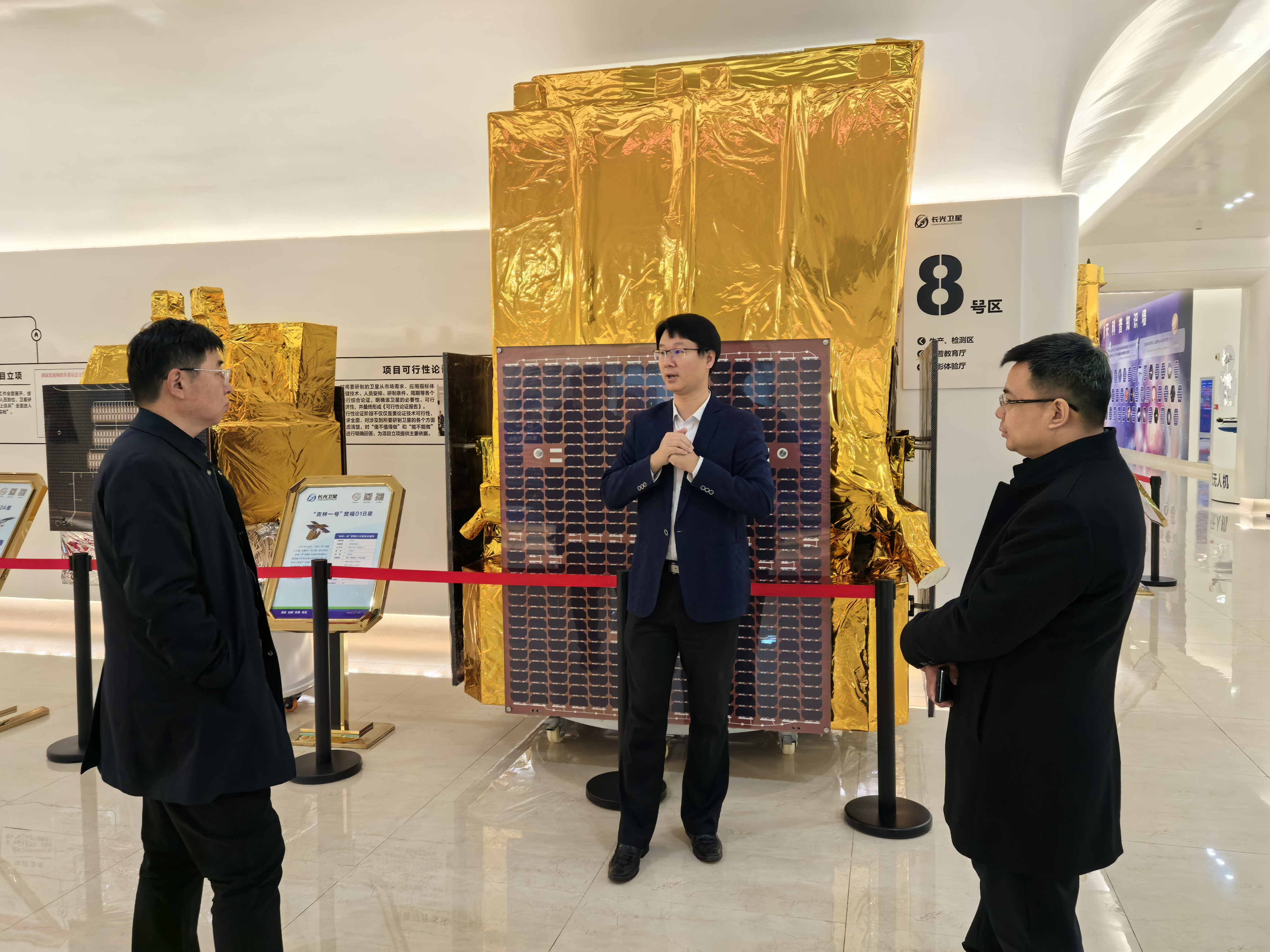 贾学志陪同金峰一行参观了卫星总装测试中心,并就“吉林一号”卫星工程建设进展、核心技术优势及遥感数据开发应用等情况进行了详细介绍。双方围绕卫星遥感技术赋能区域协同发展、以科技创新推动东北全面振兴等方面进行了深入交流。