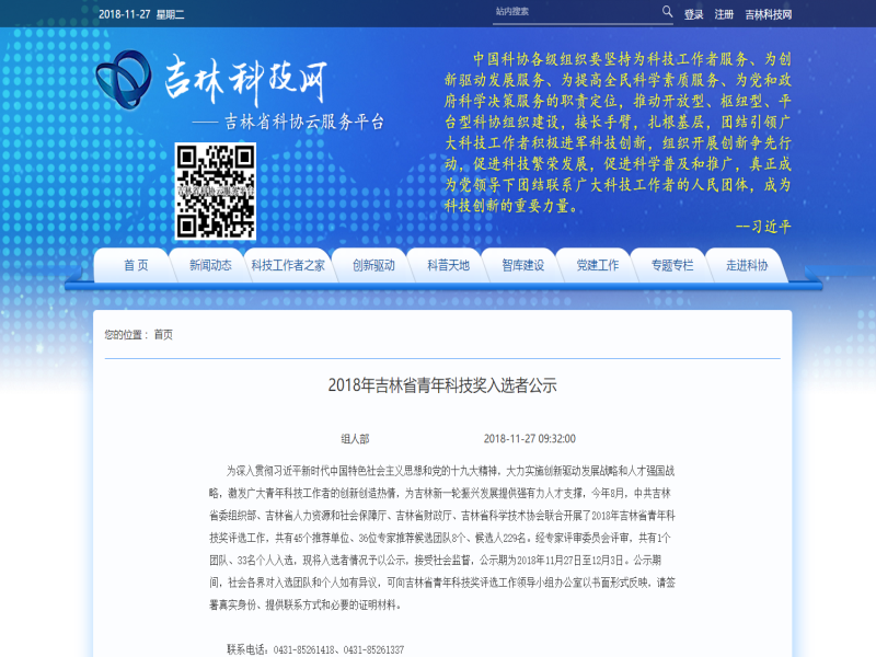 ● 关于公司副总经理钟兴入选2018年吉林省青年科技奖特别奖的公示 2018年8月,由中共吉林省委组织部、吉林省财政厅、吉林省人社厅及吉林省科协联合开展了2018年吉林省青年科技奖的评选工作。本次评选活动中共有8个候选团队、229名候选人参加评选,经专家评审委员会评审,公司副总经理、卫星型号总设计师钟兴入选2018年吉林省青年科技奖特别奖。公示情况如下: 2018-11-27