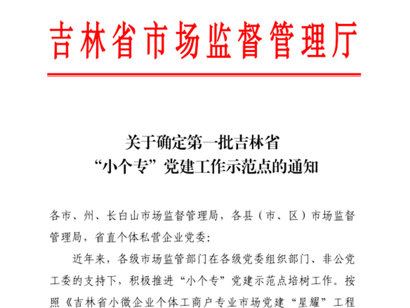 ● 长光卫星技术有限公司党委被认定为“第一批吉林省‘小个专’党建工作示范点” 2021年7月26日,吉林省市场监督管理厅下发了《关于确认第一批吉林省“小个专”党建工作示范点的通知》,经过逐级评审,认真核查,共评选出第一批吉林省“小个专”党建工作示范点24个,长光卫星技术有限公司党委获此荣誉。 2021-07-26