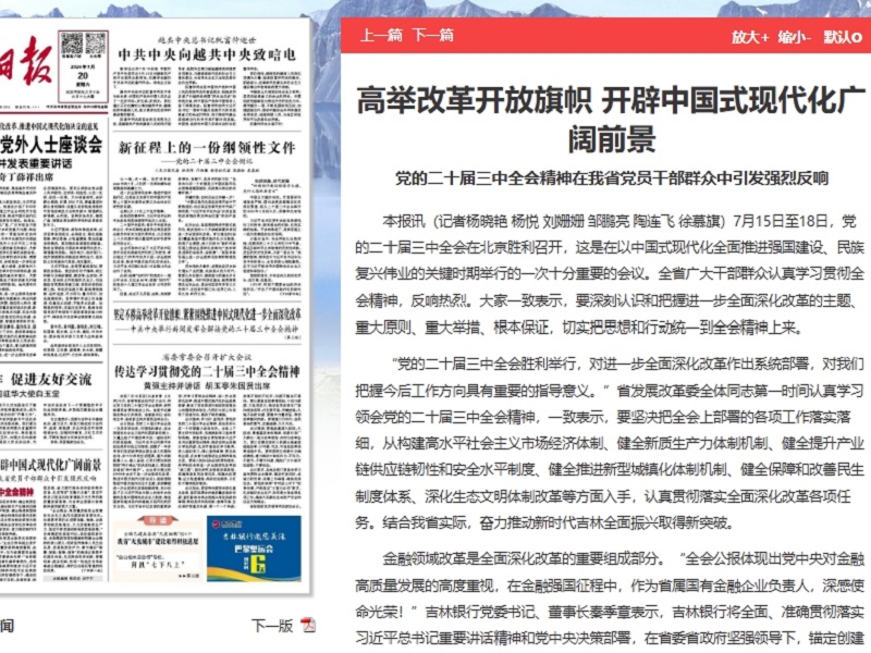 ● 长春新闻-凝心聚力抓落实 开创进一步全面深化改革新局面 学习贯彻好党的二十届三中全会精神是我市当前和今后一个时期的一项重大政治任务。我市各级各部门纷纷表示,要深入学习领会全会精神,把进一步全面深化改革的战略部署转化为推进长春高质量发展的强劲动能,在扎实奋斗中把中国式现代化的宏伟蓝图逐渐变成美好现实。 2024-07-23