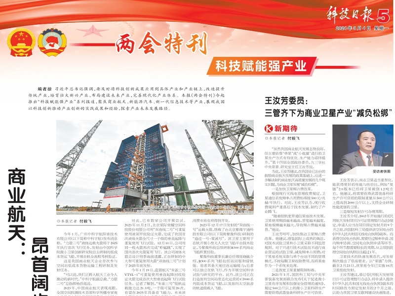 ● 科技日报-商业航天:昂首阔步迈入发展“快车道” 习近平总书记强调,要及时将科技创新成果应用到具体产业和产业链上,改造提升传统产业,培育壮大新兴产业,布局建设未来产业,完善现代化产业体系。本报《两会特刊》今起推出“科技赋能强产业”系列报道,聚焦商业航天、新能源汽车、新一代信息技术等产业,展现我国以科技创新推动产业创新的实践成果和经验,探索产业未来发... 2024-03-04