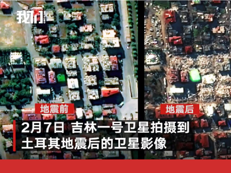 ● 新京报-卫星视角看土耳其地震前后:大批房屋受损 足球场搭起避难帐篷 2月7日,吉林一号卫星拍摄到土耳其地震后的卫星影像。地震导致卡赫拉曼马拉什省的蒂尔克奥卢地区大批房屋受损,很多建筑物已经完全被摧毁。蒂尔克奥卢的一个足球场搭建起密密麻麻的帐篷,作为临时避难场所。在土耳其东南部小镇伊斯拉希耶,数十座建筑物在地震后倒塌,市中心的一组住宅楼几乎被夷为平地,多座大型高层建筑... 2023-02-08