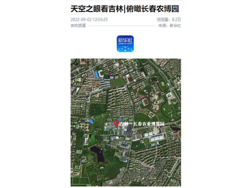 ● 新华社-天空之眼看吉林|俯瞰长春农博园 这是“吉林一号”卫星近日从太空中拍摄的长春农业博览园景色。太空视角下的园区一片翠绿,美景如画。该园坐落于长春净月高新技术产业开发区,环境优良,交通便利,总占地面积106万平方米。 2022-09-02