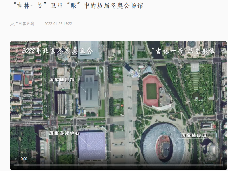 ● 央广网-“吉林一号”卫星“眼”中的历届冬奥会场馆 央广网长春1月25日消息(记者 苏高格)在2022年北京冬季奥运会即将开幕之际,“吉林一号”卫星从太空传回了北京冬奥会、平昌冬奥会、索契冬奥会、温哥华冬奥会、都灵冬奥会和盐湖城冬奥会等历届冬奥会场馆影像。 2022-01-25