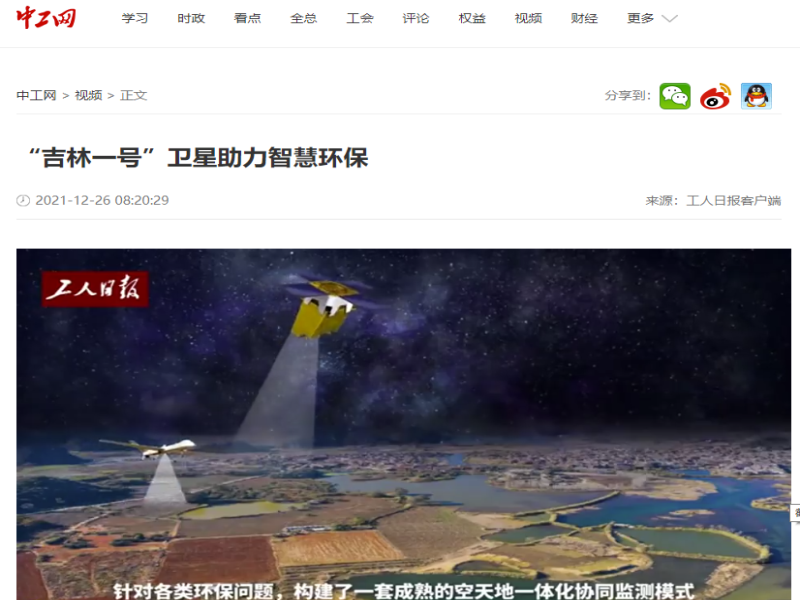 ● 中工网-“吉林一号”卫星助力智慧环保 生态环境关乎民生福祉,关乎可持续发展。记者从长光卫星技术有限公司获悉,为充分发挥卫星遥感技术在环境保护与监测方面的重要作用,该公司依托“吉林一号”卫星星座图像质量高、响应速度快、覆盖面积广的特点,研发出裸土扬尘源监测、秸秆焚烧与全量化处置监测、城市及农村黑臭水体污染监测等一系列环保遥感监测服务产品。... 2021-12-26