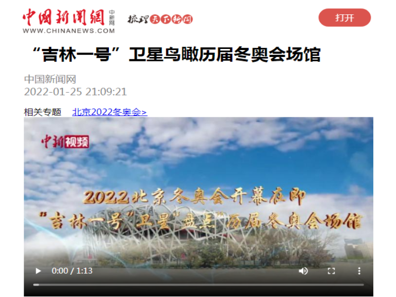 ● 中国新闻网-“吉林一号”卫星鸟瞰历届冬奥会场馆 在2022年北京冬奥会来临之际,“吉林一号”卫星从太空传回了北京冬奥会、平昌冬奥会、索契冬奥会、温哥华冬奥会、都灵冬奥会、盐湖城冬奥会等历届冬奥会场馆影像。 2022-01-25