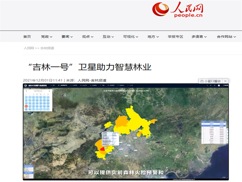 ● 人民网-“吉林一号”卫星助力智慧林业 林业资源是我国最宝贵的自然资源之一。随着科学技术的发展,卫星遥感技术在林业应用的广度和深度逐渐扩大,为我国林业资源的保护与管理提供了有力保障。长光卫星技术有限公司依托“吉林一号”卫星星座全天时、全天候、全谱段数据获取能力,充分利用卫星遥感、大数据、人工智能技术以及“天空地一体化”手段,开发林业资源分... 2021-12-01