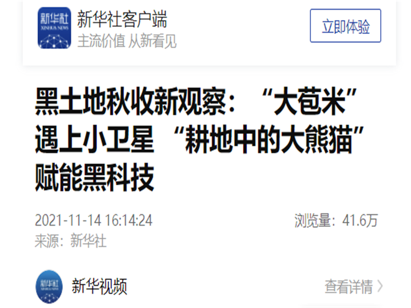 ● 新华社-黑土地秋收新观察:“大苞米”遇上小卫星 “耕地中的大熊猫”赋能黑科技 在整个农业生产过程中,科技手段起到重要作用,监测长势,预测产量,判断墒情……全天时、全天候、全谱段的卫星光学遥感数据,成为农业产业现代化建设及农业高质量发展的助推器。 2021-11-14