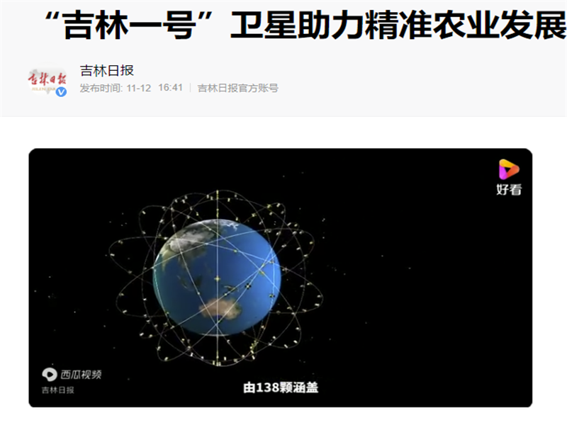 ● 吉林日报-“吉林一号”卫星助力精准农业发展 “吉林一号”卫星星座作为我国最大的光学遥感卫星星座,由138颗涵盖高分辨、大幅宽、视频、多光谱等系列的高性能光学遥感卫星组成,可获取全天时、全天候、全谱段光学遥感数据,具备图像质量高、响应速度快、覆盖面积广的特点。“吉林一号”卫星遥感应用产品可以为农林、水利、环保、交通、自然资源、城市建设等14个领... 2021-11-12