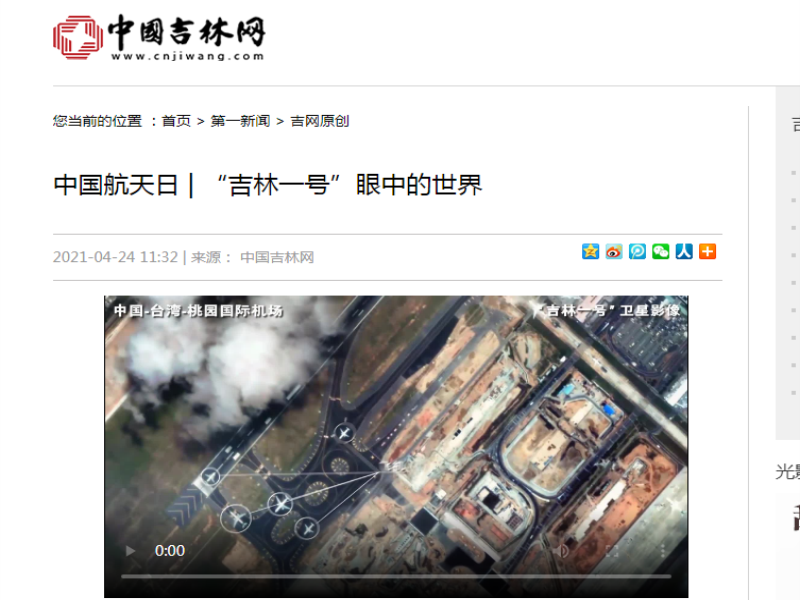 ● 中国吉林网-中国航天日 | “吉林一号”眼中的世界 4月24日,第六个“中国航天日”。“吉林一号”卫星从太空传回了中国上海、日本东京、西班牙巴伦西亚、阿联酋迪拜等地的卫星视频影像。影像中繁忙有序的机场、川流不息的车辆、鳞次栉比的建筑、急速行驶的火车等清晰可见。“吉林一号”邀大家一起欣赏卫星眼中的世界。 2021-04-25