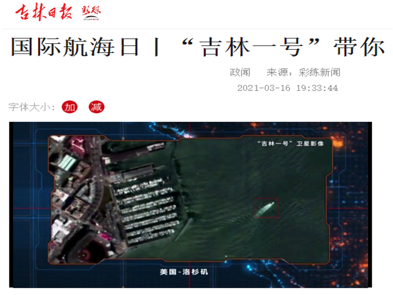 ● 彩练新闻-国际航海日丨“吉林一号”带你“航游”世界 3月17日是“国际航海日”,在2021年国际航海日来临之际,“吉林一号”卫星从太空传回了中国香港、美国洛杉矶、韩国釜山、日本横滨等7个知世界著名港口及航道的卫星视频影像,影像中排列有序的集装箱、型号各异的船舶、川流不息的车辆清晰可见。 “吉林一号”带领大家从卫星的视角一起“航游”世界,共赏盛景。 2021-03-16