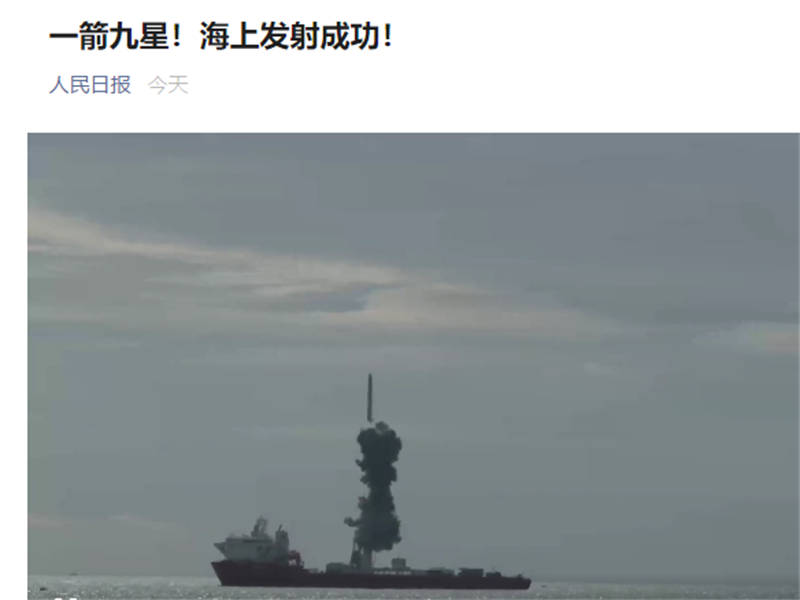 ● 人民日报-一箭九星!海上发射成功! 9月15日9时23分,长征十一号运载火箭在黄海海域采用“一箭九星”的方式,成功将吉林一号高分03组卫星送入535公里的太阳同步轨道。本次发射的“吉林一号”高分03组卫星,包括3颗高分03C视频星和6颗高分03B推扫星。此次任务是长十一火箭首次海上商业化应用发射。祝贺!(人民日报客户端余建斌、刘诗瑶、... 2020-09-15
