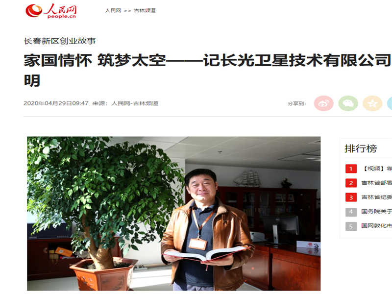 ● 人民网-家国情怀 筑梦太空——记长光卫星技术有限公司董事长宣明 作为我国微机械研究领域的学术带头人之一,他创建了我国第一个微型机械研究室;作为曾经的中科院长春光机所所长,他是我国载人航天工程“神舟五号”和“神舟六号”有效载荷分系统行政总指挥;作为筑梦太空的领头人,他带领团队成功将国内第一颗商用卫星“吉林一号”送上太空……十余载光阴,悠悠一瞬间。他用满心满眼的家国... 2020-04-29
