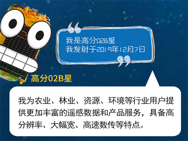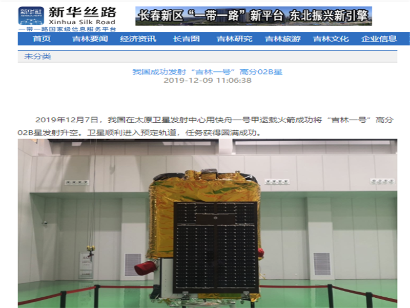 ● 新华丝路-我国成功发射“吉林一号”高分02B星 2019年12月7日,我国在太原卫星发射中心用快舟一号甲运载火箭成功将“吉林一号”高分02B星发射升空。卫星顺利进入预定轨道,任务获得圆满成功。 2019-12-09