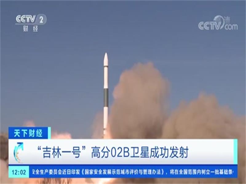 ● 中国日报-我国成功发射“吉林一号”高分02B星 2019年12月7日,我国在太原卫星发射中心用快舟一号甲运载火箭成功将“吉林一号”高分02B星发射升空。卫星顺利进入预定轨道,任务获得圆满成功。 2019-12-08