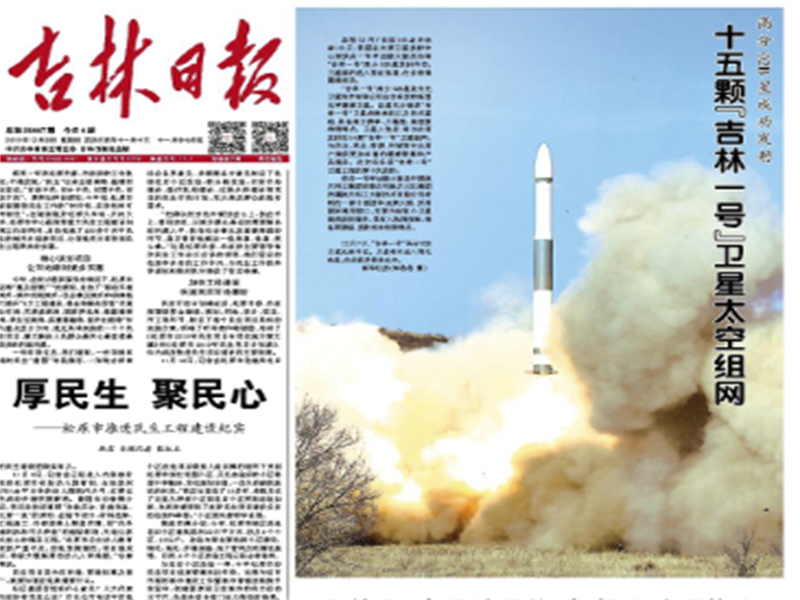 ● 吉林日报-十五颗“吉林一号”卫星太空组网 本报12月7日讯(记者李晓静)今天,我国在太原卫星发射中心用快舟一号甲运载火箭成功将“吉林一号”高分02B星发射升空。卫星顺利进入预定轨道,任务获得圆满成功。 2019-12-08