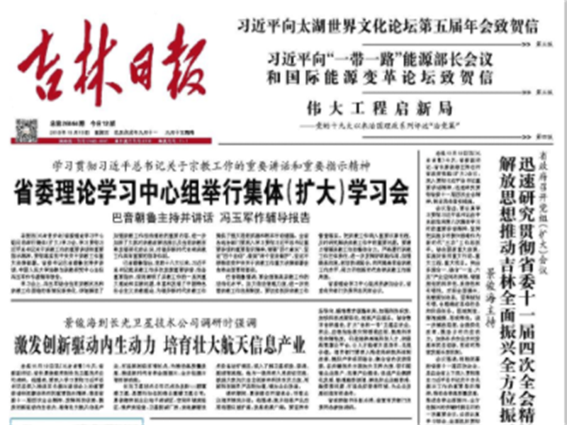 ● 【吉林日报】-景俊海到长光卫星技术公司调研时强调_激发创新驱动内生动力_培育壮大航天信息产业 本报10月18日讯(记者黄鹭)今天,省委副书记、省长景俊海来到长光卫星技术公司调研。他强调,要深入学习贯彻习近平总书记在深入推进东北振兴座谈会上的重要讲话和视察吉林时的重要指示精神,落实省委十一届四次全会精神,发挥科技优势,激发创新驱动内生动力,培育壮大航天信息产业,打造新的经济增长点,为推动高质量... 2018-10-19