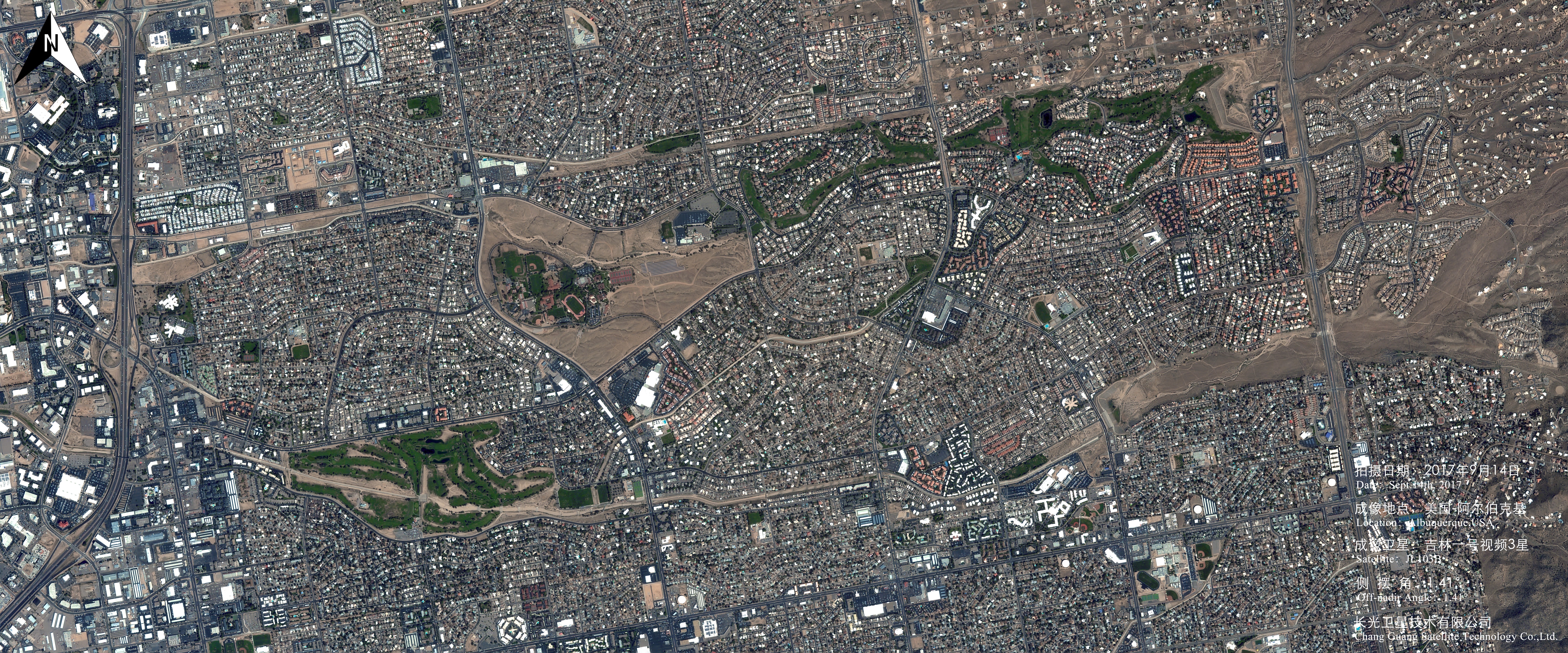 阿尔伯克基被评为全美增长最快的城市之一。阿尔伯克基早期将农、牧产品加工作为其主要工业,第二次世界大战后逐渐发展成为核能及新能源、宇航、计算工程的科研基地。从卫星影像中可以看出,和美国大多数的城市一样,阿尔伯克基道路四通八达,车道宽阔,这也促进了阿尔伯克基的城市发展。