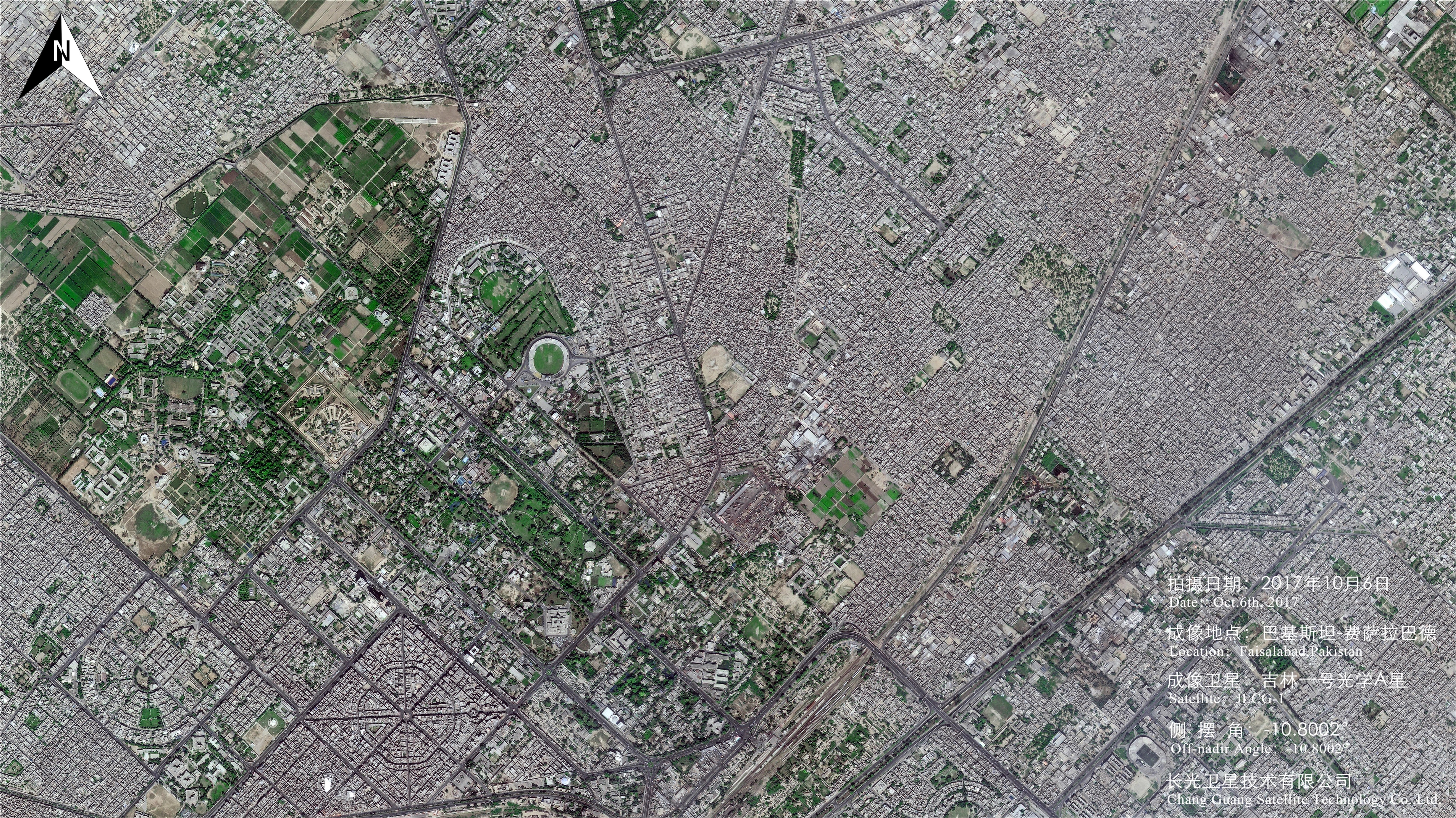 巴基斯坦-费萨拉巴德 费萨拉巴德位于巴基斯坦东北部,总面积5,856平方公里。该城市位于冲击平原地带,其郊区是棉花和小麦的主要产区,工业则以纺织和食品加工为主。从上图可以看出,该城市的交通规划十分完善,道路网分布密集。