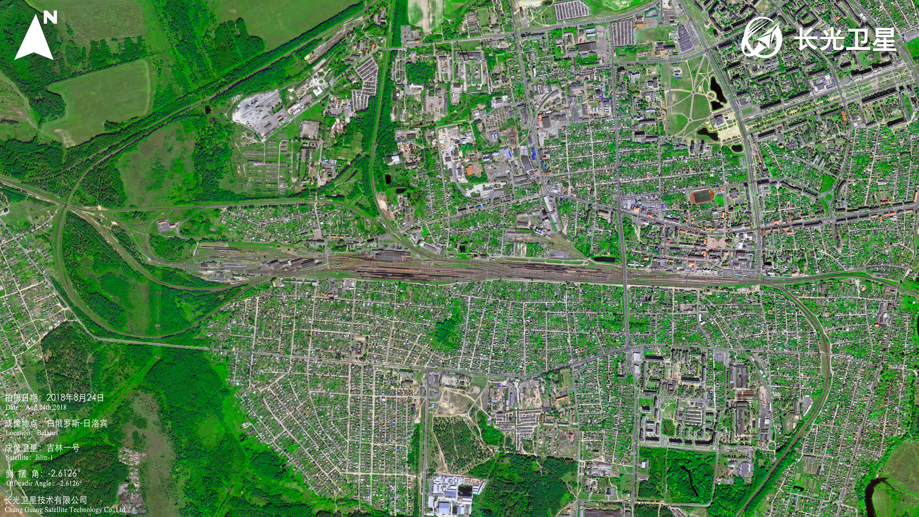 在白俄罗斯,铁路干线担负着全国货运量的约75%和客运量的50%。“吉林一号”拍摄的这张高清图中,可以看到一条铁路干线贯穿日洛宾市中心,能清晰地看到停靠的货车及铁轨。