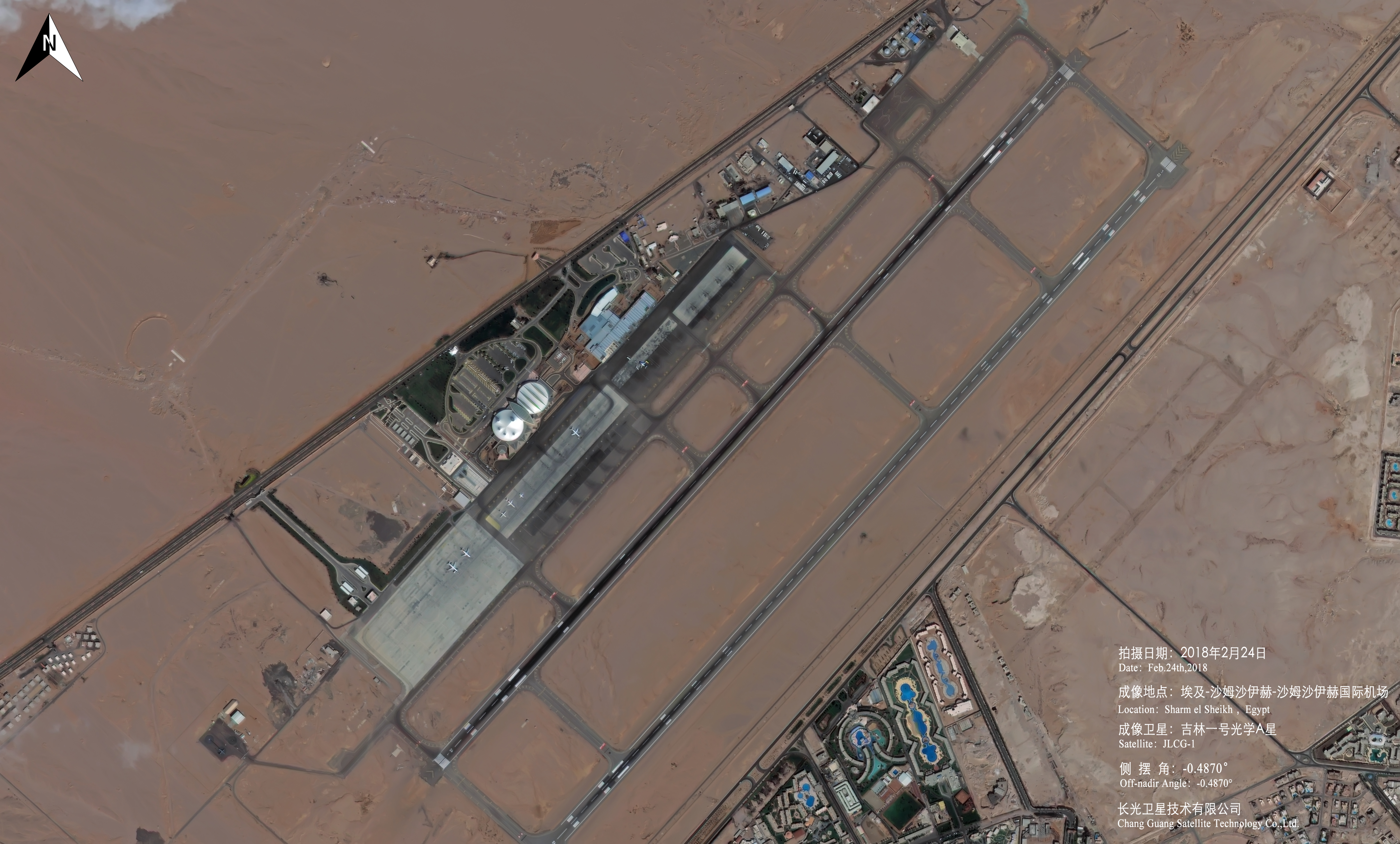 沙姆沙伊赫一译“沙尔姆谢赫”,是一个位于西奈半岛南端的沙漠城市,依山傍海,是著名的旅游胜地,每年成千上万来自世界各地的游客来此观光游览。今天吉林一号就带大家来到了沙姆沙伊赫国际机场, 沙姆沙伊赫国际机场跻身非洲十大最繁忙机场之一,始建于1968年5月14日,曾作为以色列空军基地。该机场拥有2座航站楼,数架飞机整齐停放在航站楼前等待起飞,飞机跑道可供大型飞机起降。