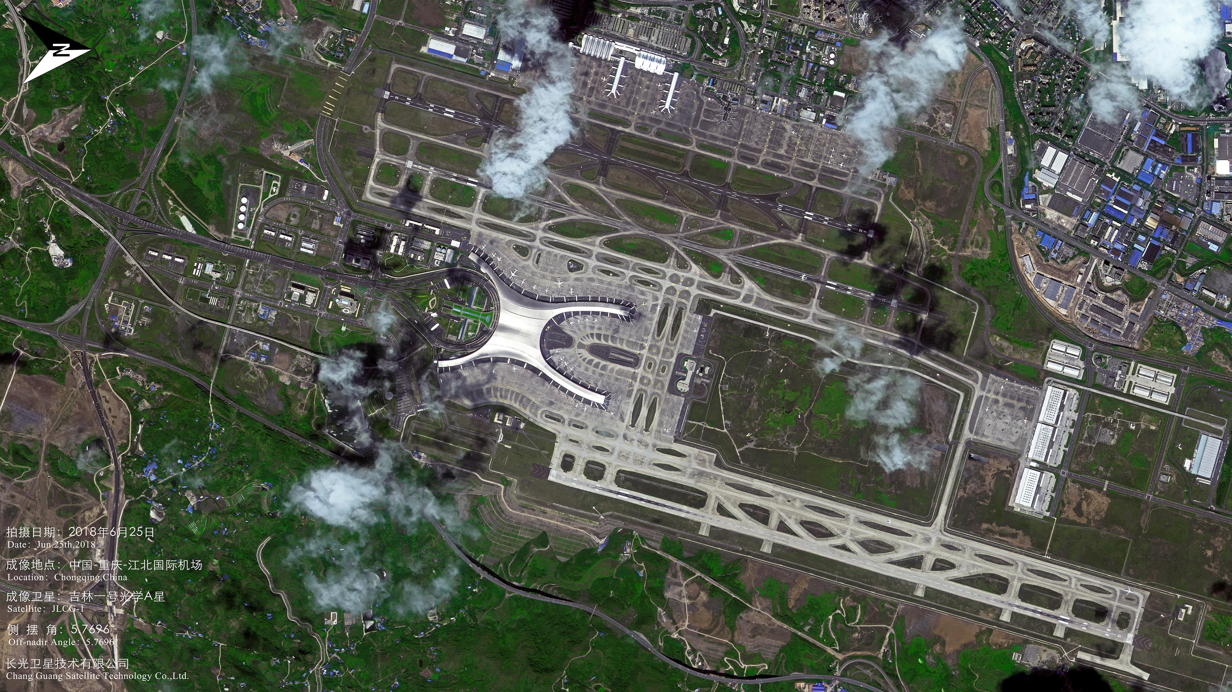 重庆江北国际机场位于中国重庆市渝北区两路街道,距离市中心19公里,为4F级民用国际机场,是中国八大区域枢纽机场之一。2013年12月,重庆江北国际机场成为中国第五个实行72小时过境免签政策的航空口岸。重庆江北国际机场的T3A航站楼及第三跑道,于2017年8月29日06:00正式启用。T3A共6层,地上4层、地下2层,平面呈H型环抱布局,由中央大厅及4个指廊构成,其“两江汇流”的建筑形态,寓意长江、嘉陵江在重庆交汇。