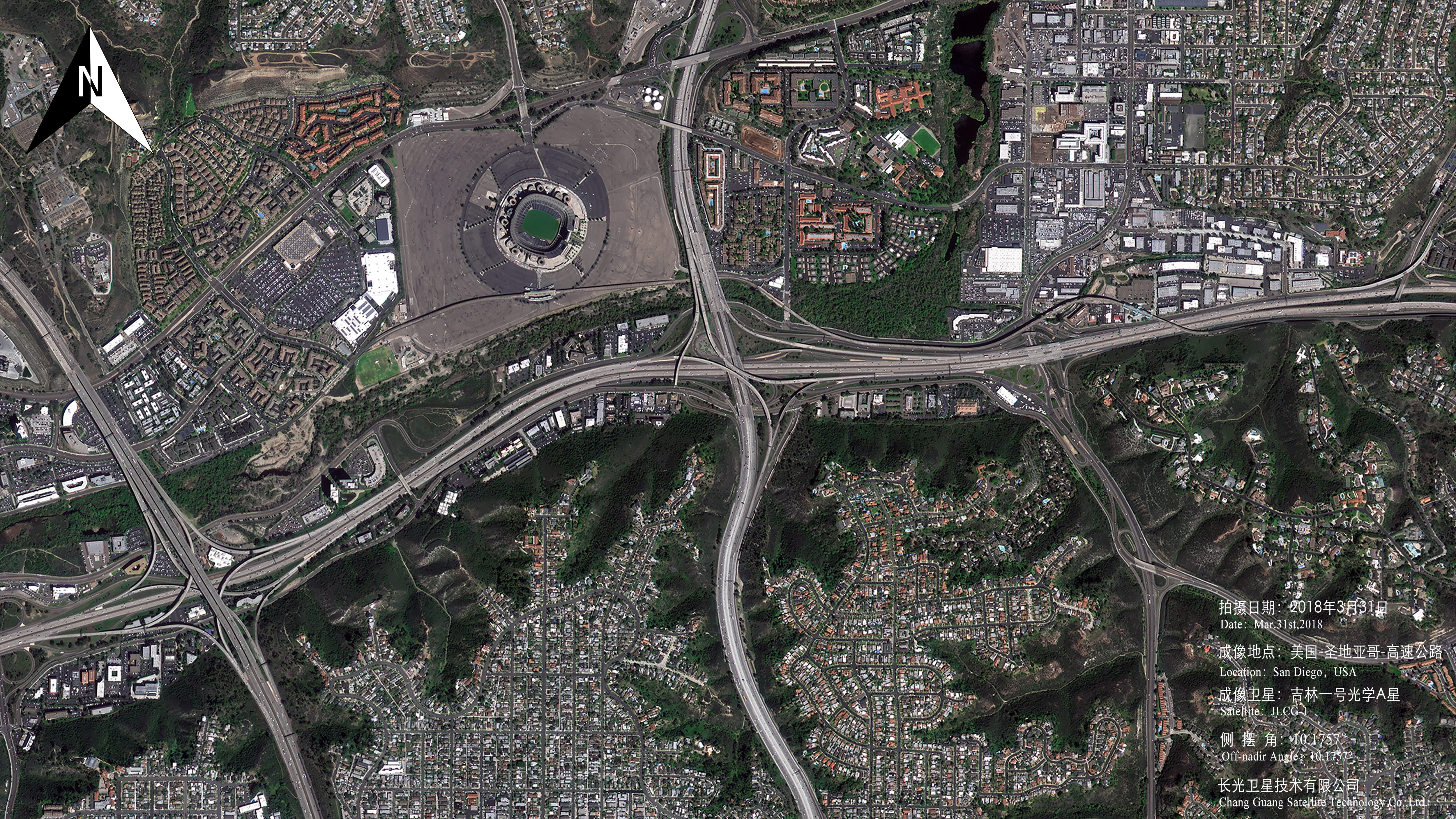 当然,圣地亚哥连接美国国内的城市间交通网也非常发达。在圣地亚哥游览,租一辆车可以沿着高速公路直达美国的其它城市或前往墨西哥。图中高速公路旁的高通体育场,经常会举办棒球联赛的比赛。在拍摄成像时,说不定场馆内,正在举行着酣畅淋漓的棒球比赛!