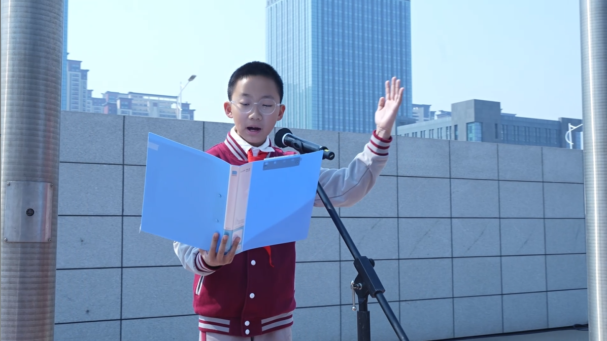 随着五星红旗冉冉升起,学生代表们在国旗下进行了慷慨激昂的演讲和朗诵,字句间饱含对祖国航天辉煌成就的自豪之情,更传递出新时代青少年赓续航天精神、立志接续奋斗的使命担当。这场升旗仪式,让航天精神与爱国主义精神在国旗下交相辉映,让每一颗幼小的心灵在航天精神的照耀下,找到属于自己的星辰大海。